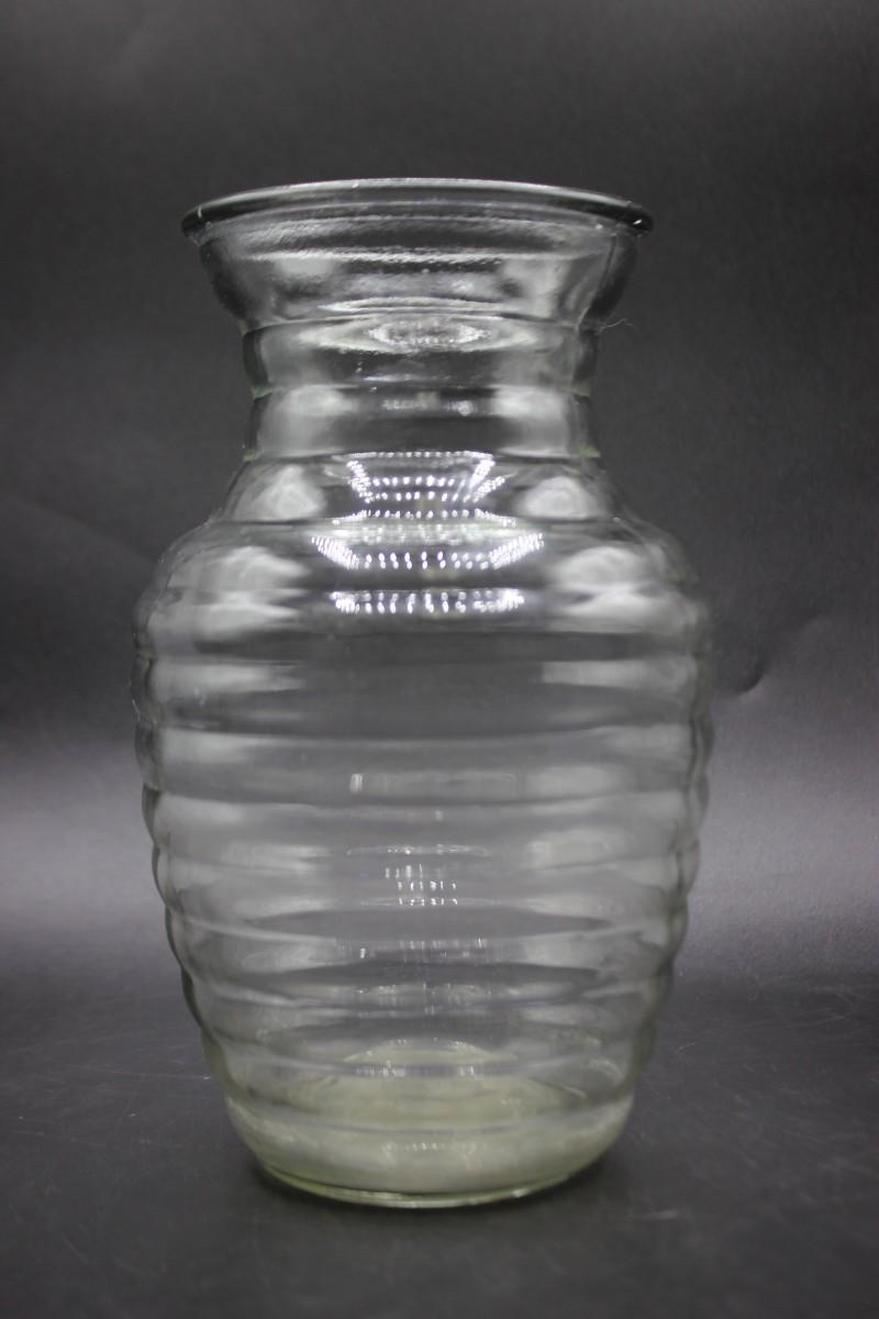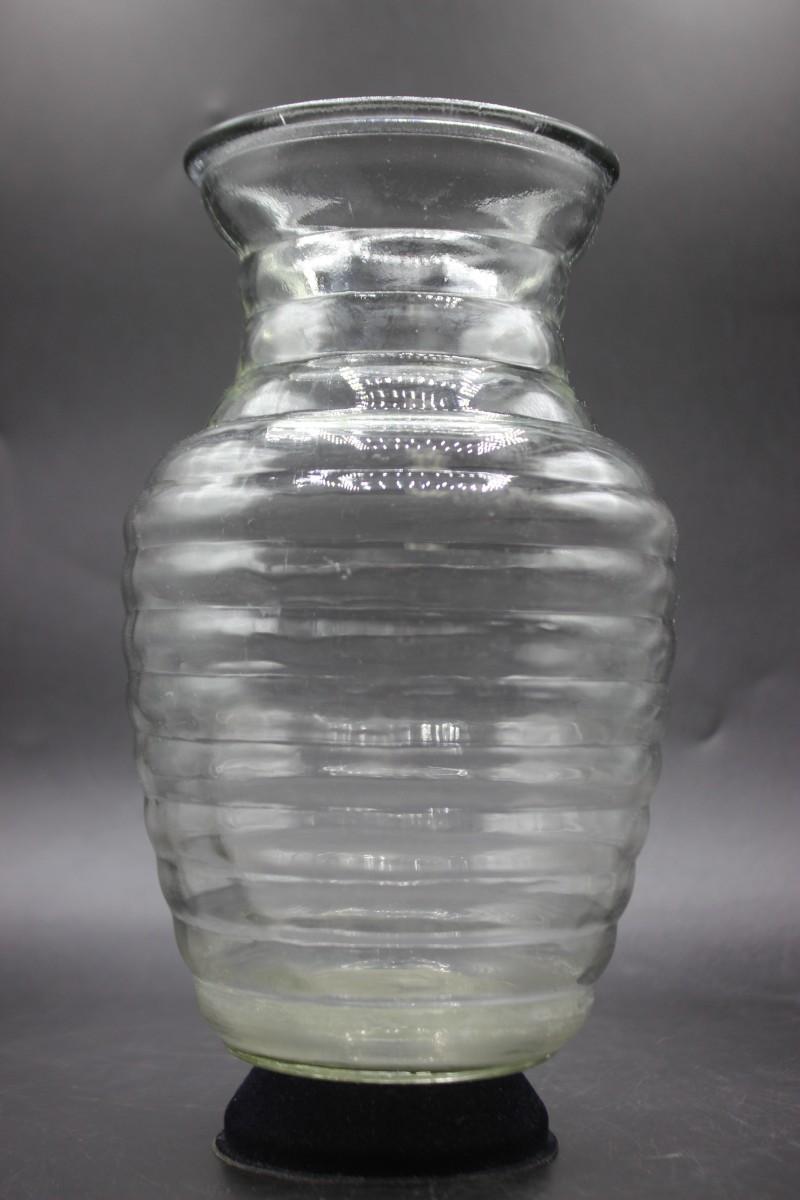 Vintage Clear Ribbed Glass Bottle Vase Carafe