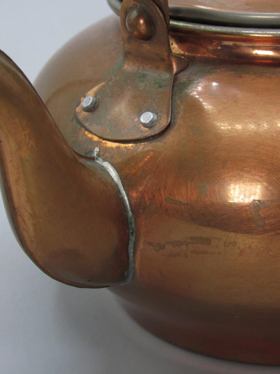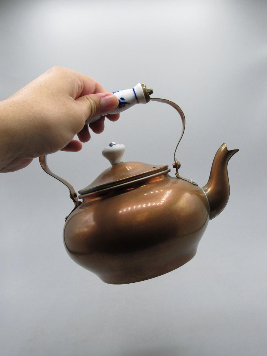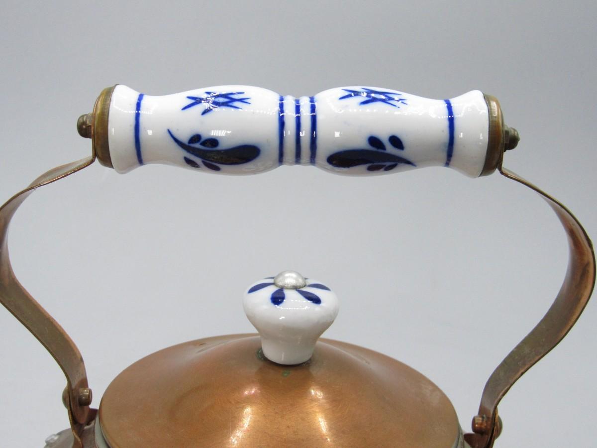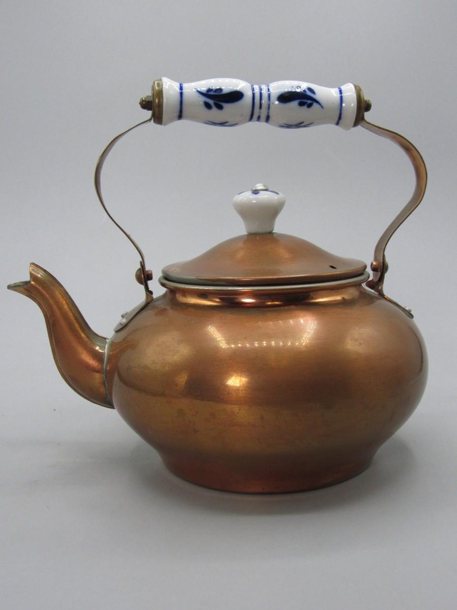Vintage Copper Teakettle with Ceramic Blue and White Handle