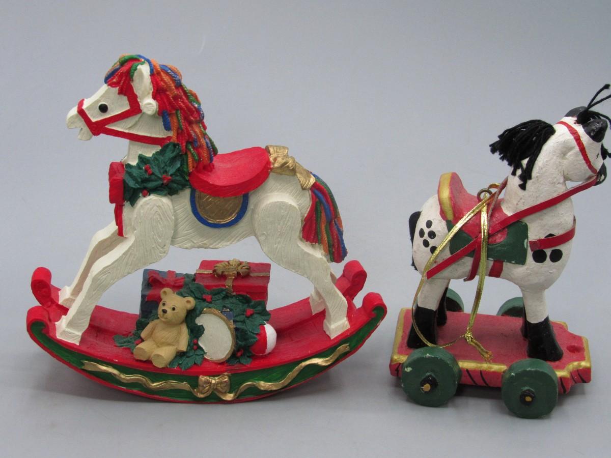 Pair of Christmas Holiday Rocking Toy Horses Unbranded and House of Hatten