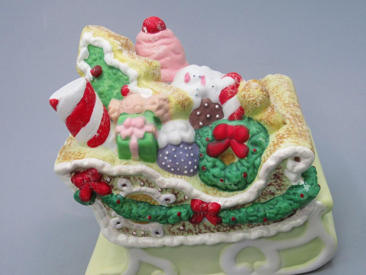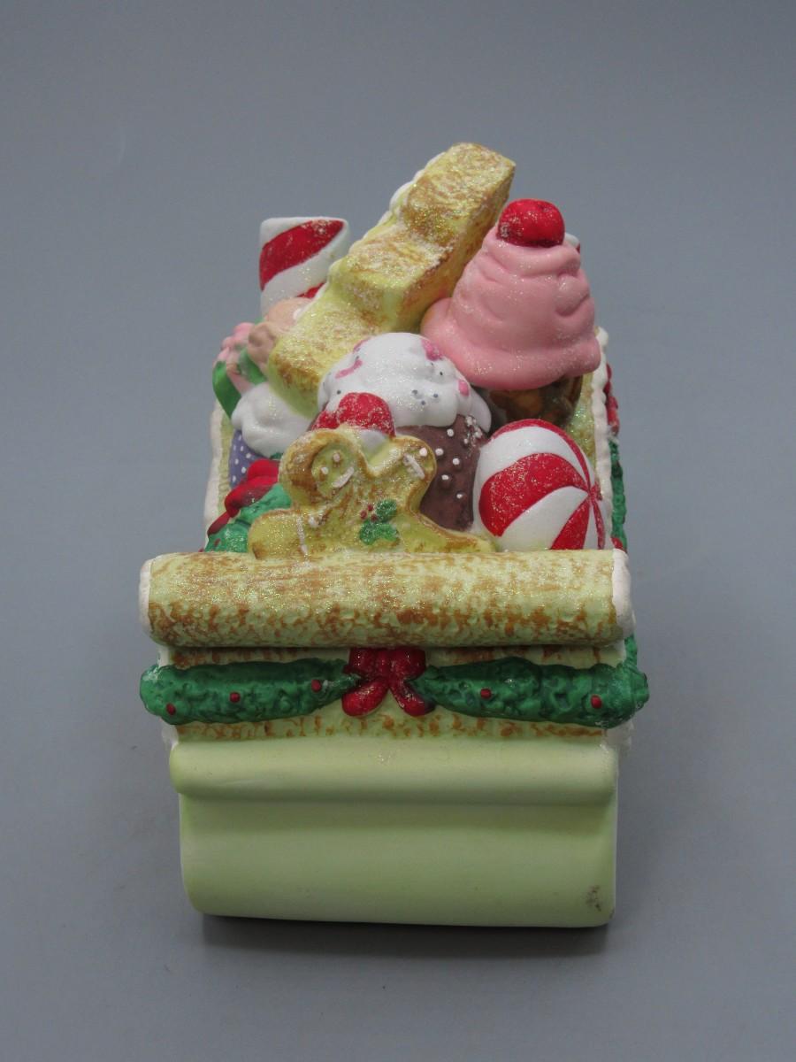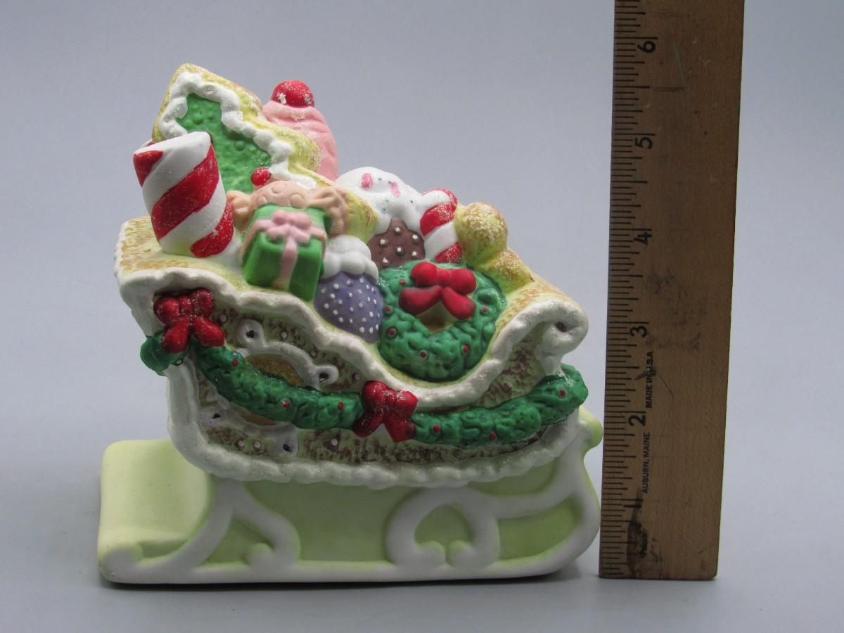 Porcelain Gingerbread Sled Music Box Wind Up in Original Box