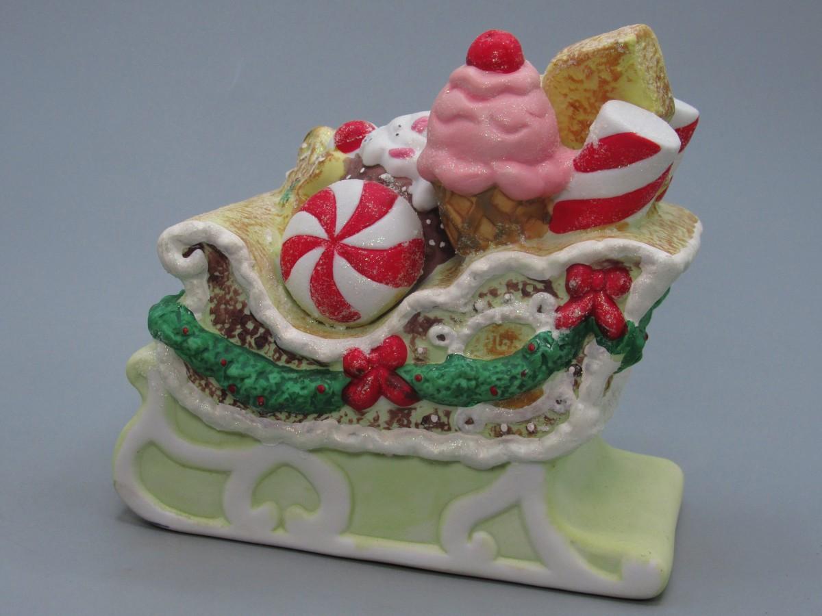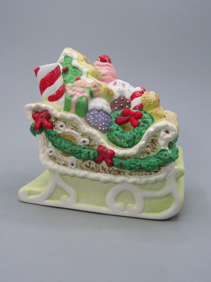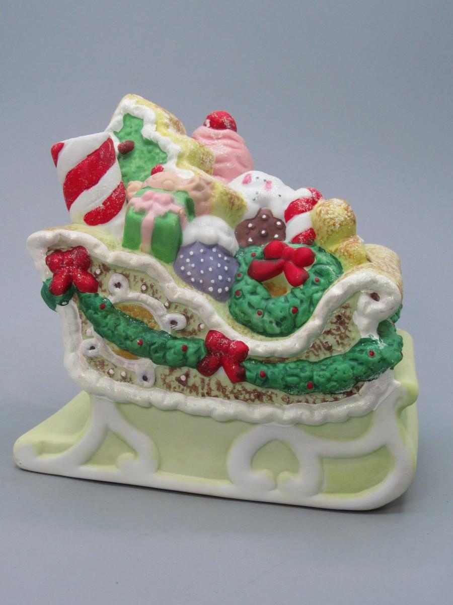 Porcelain Gingerbread Sled Music Box Wind Up in Original Box