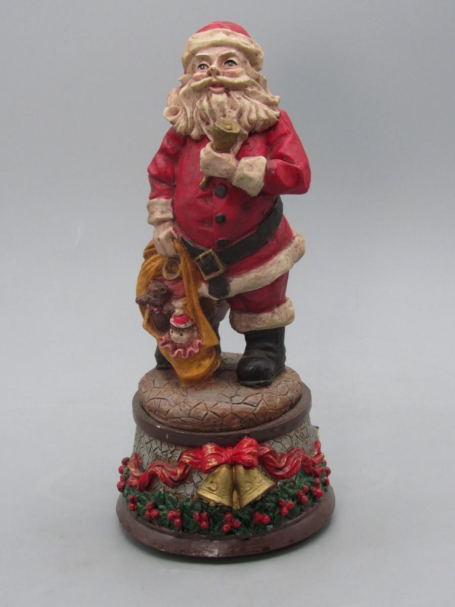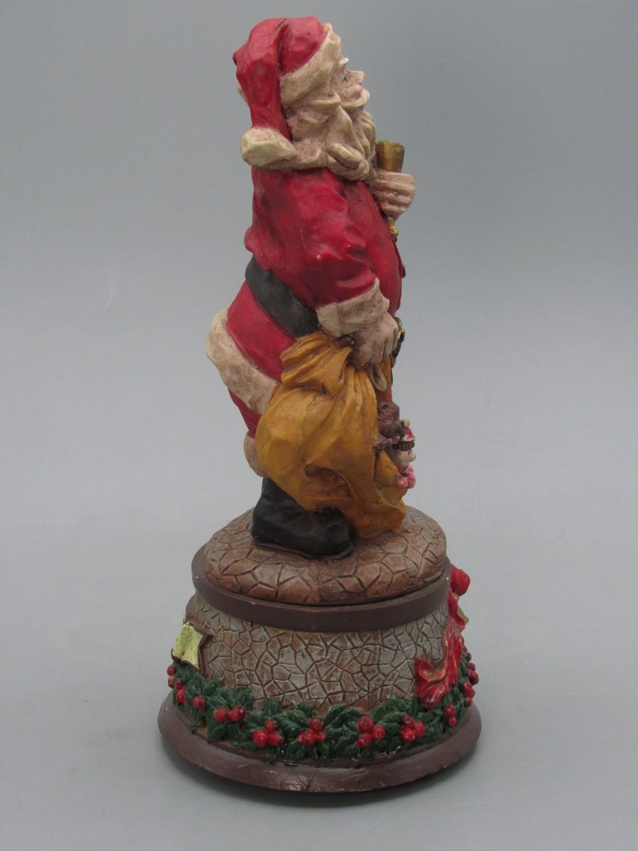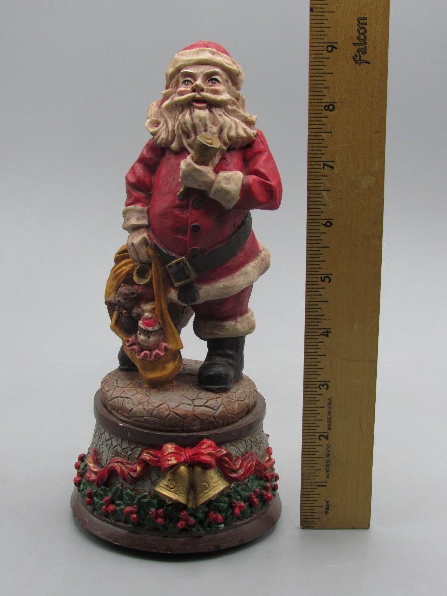 Santa Claus Figurine Wind Up Music Box. Displays well. About 9" size.