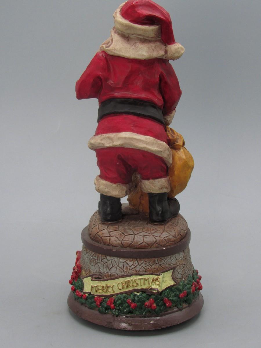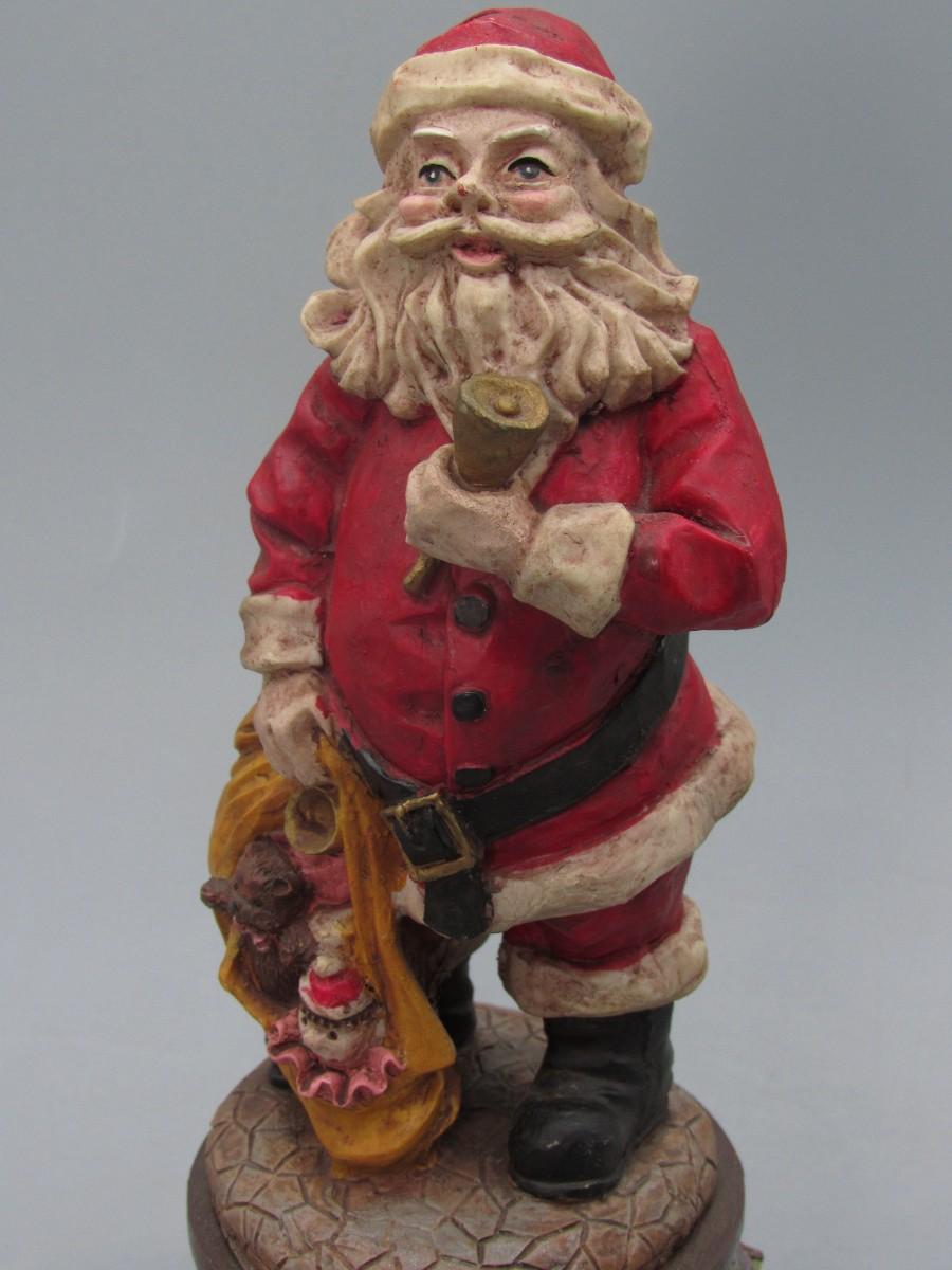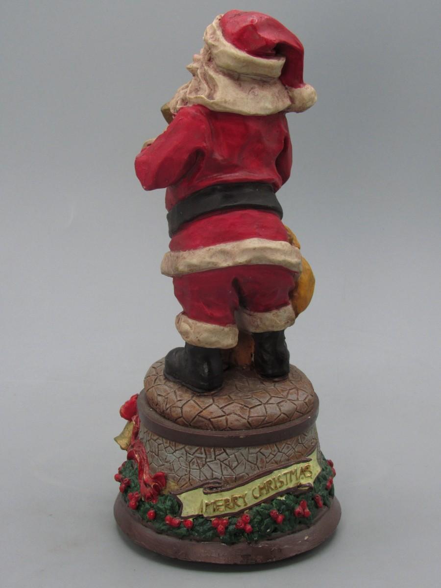 Santa Claus Figurine Wind Up Music Box. Displays well. About 9" size.