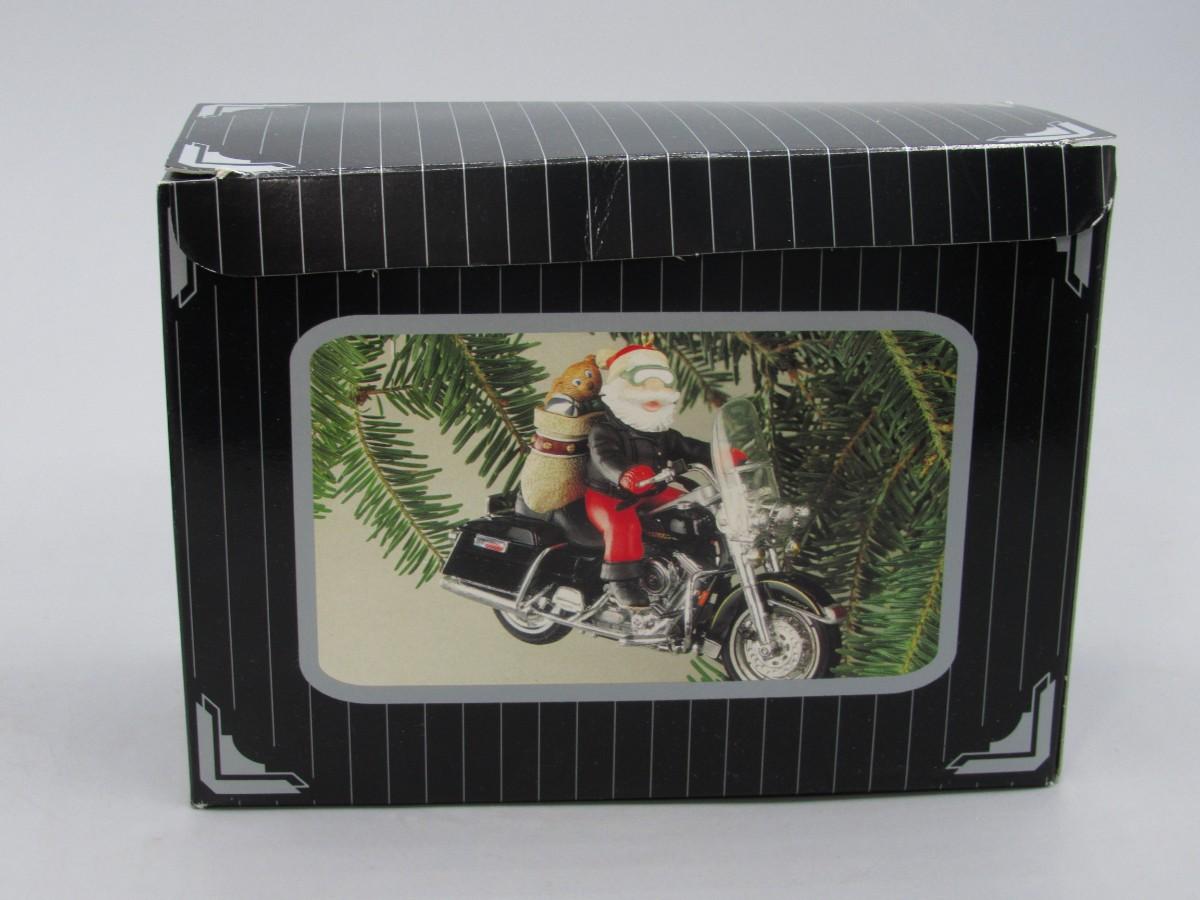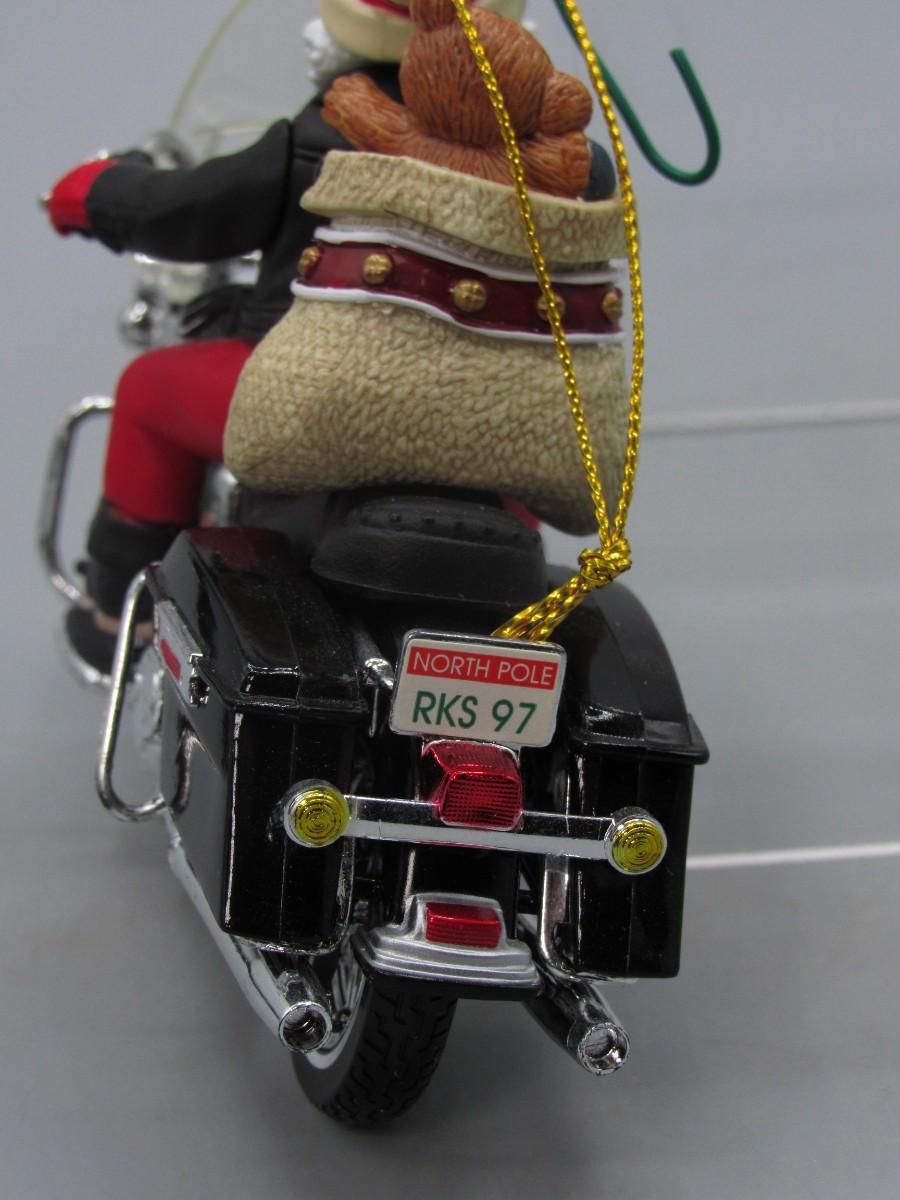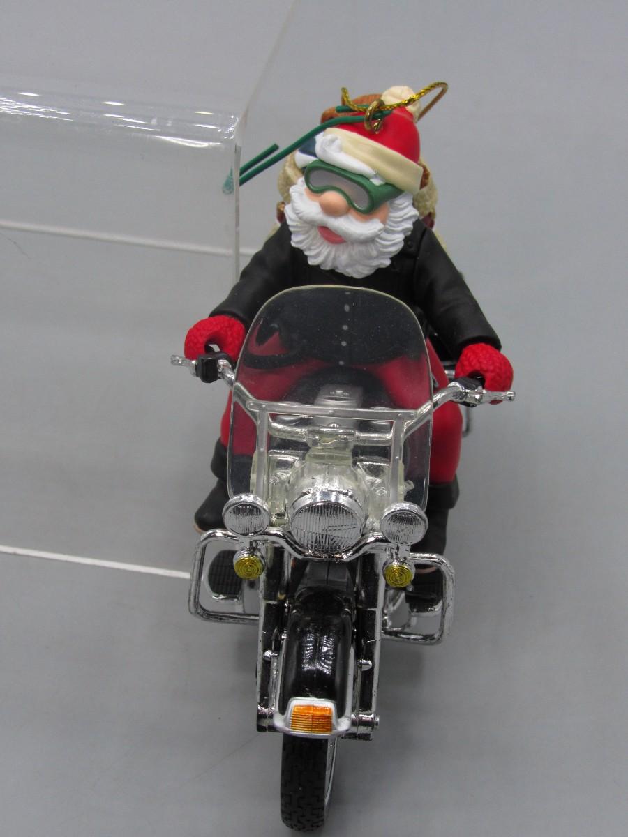 Motorcycle Riding Santa Claus Christmas Holiday Figurine Tree Ornament. In good condition. Comes with original box.