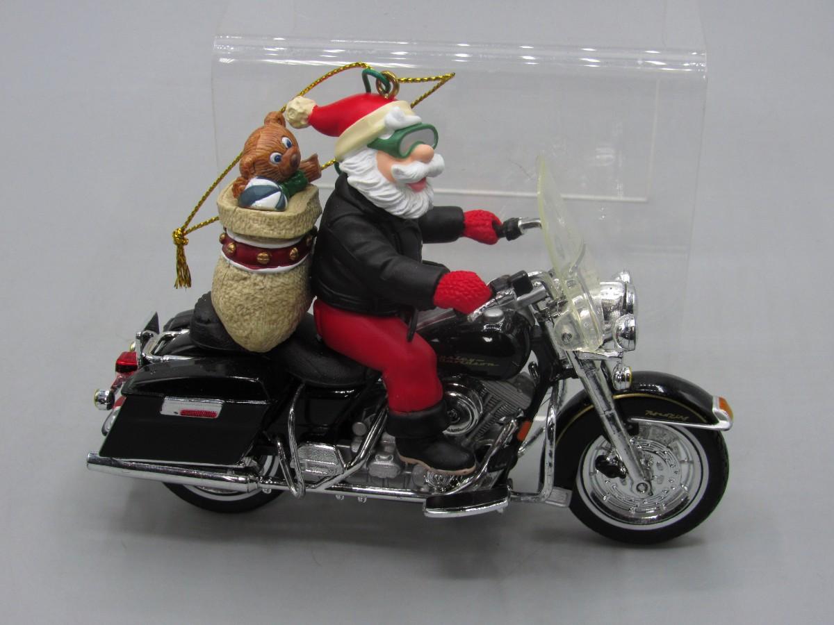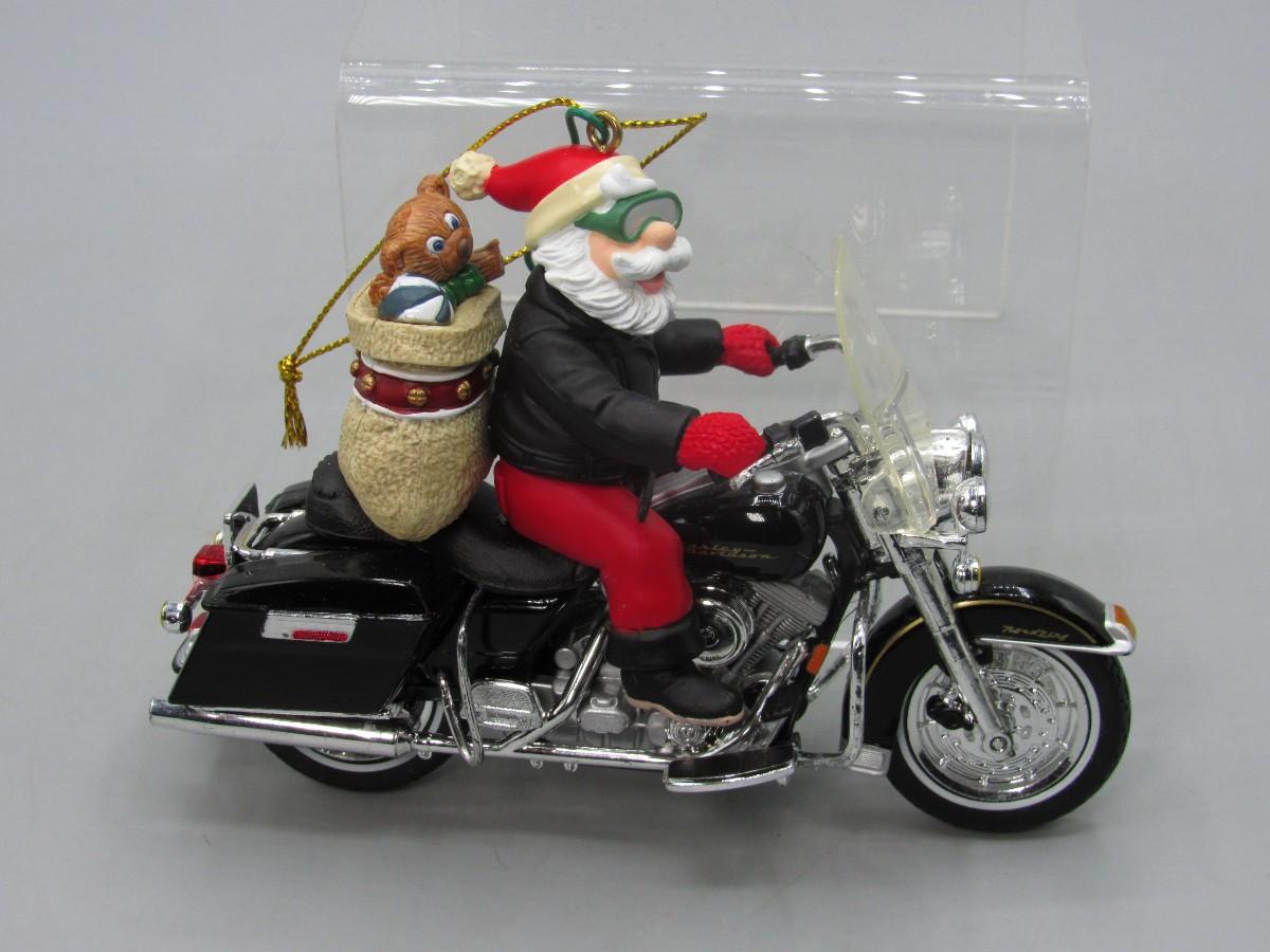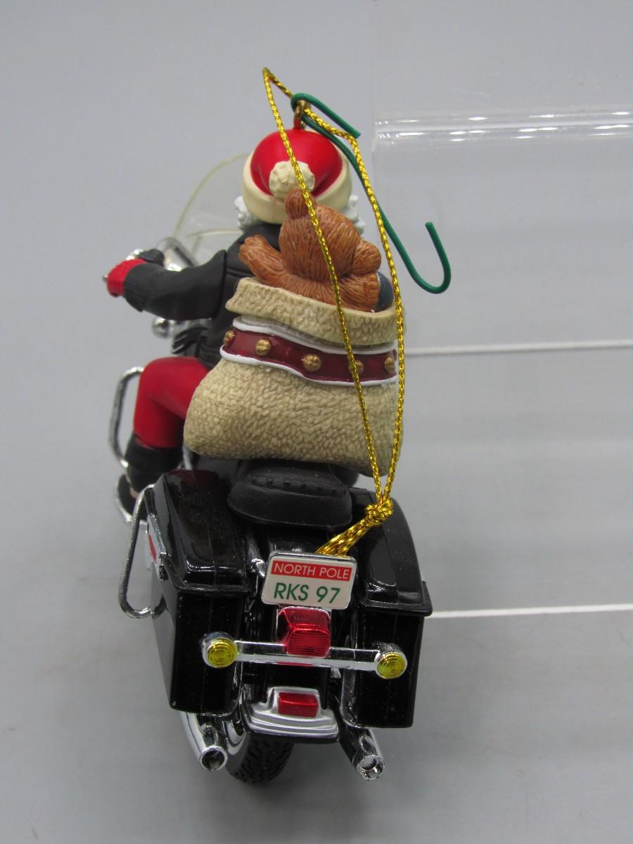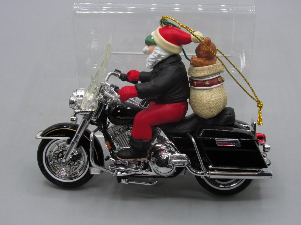 Motorcycle Riding Santa Claus Christmas Holiday Figurine Tree Ornament. In good condition. Comes with original box.