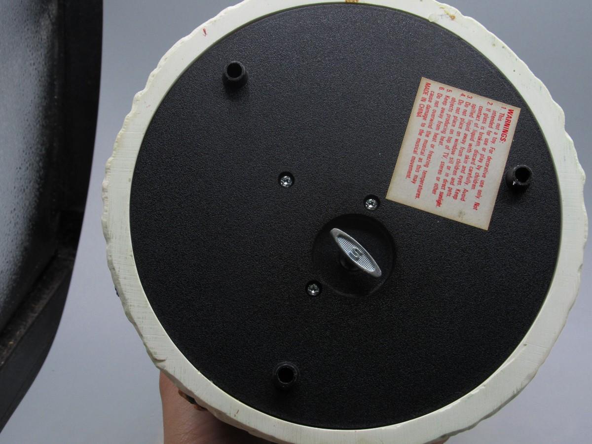 The water has an off color to it and the revolving base does not work, but there is no damage and in good condition. Music box works!