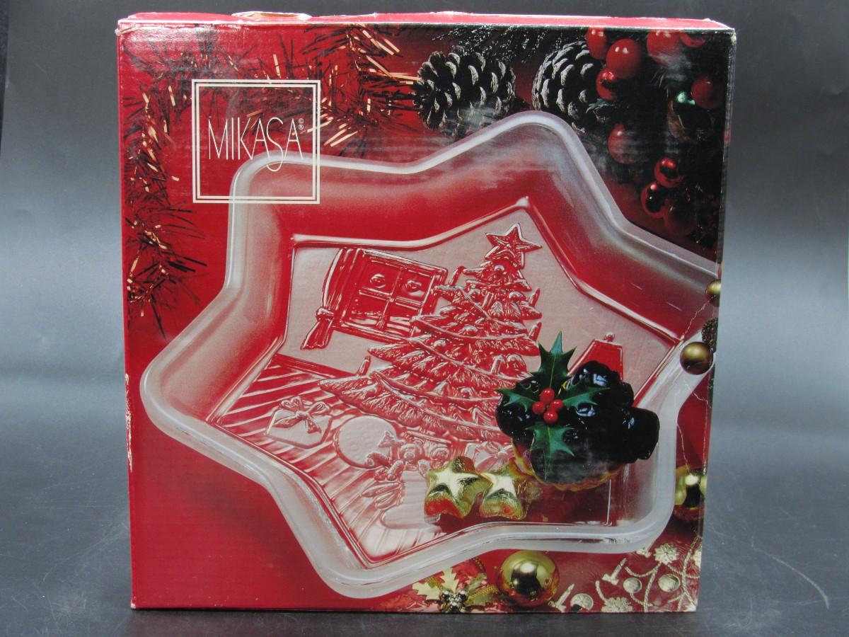 Mikasa Christmas Star Tree Sweet Glass Art Dish with Box