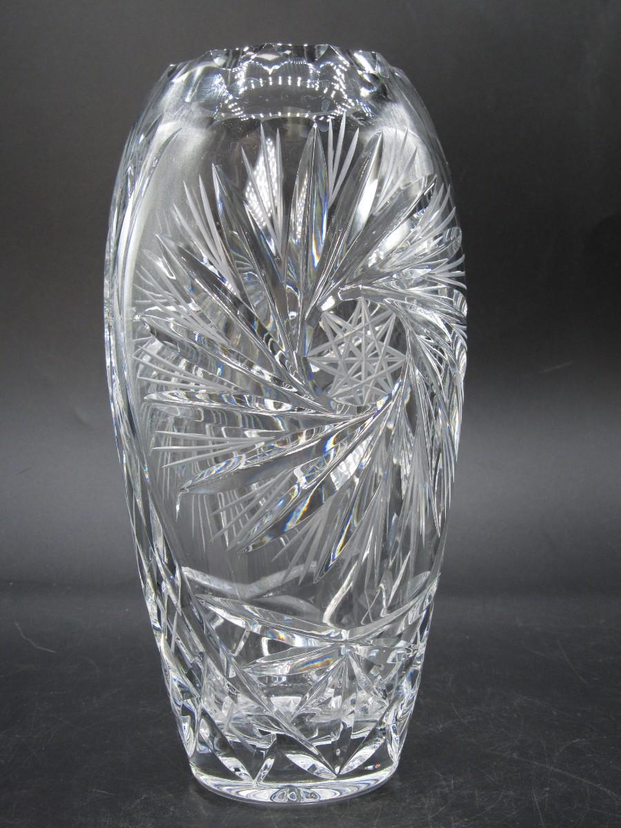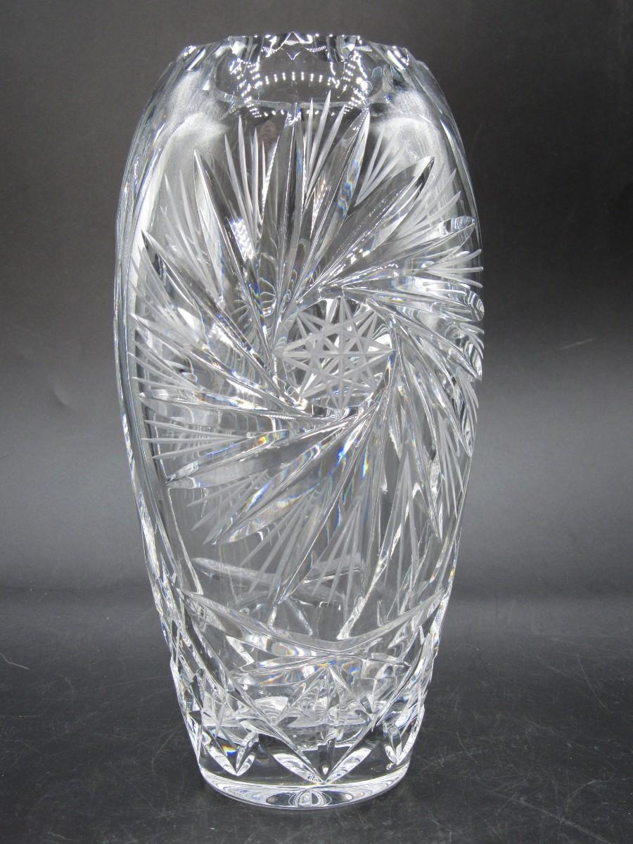 Vintage Mid Century Spinning Star Geometric Lead Crystal Glass Flower Vase