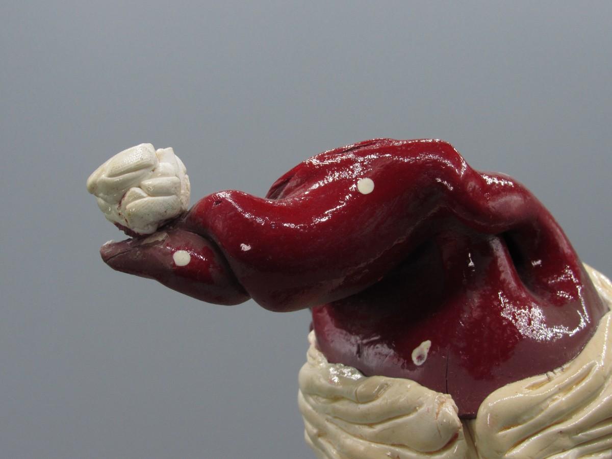 The material is smooth/glossy and appears to be a sculpted clay material. Interesting texture and overall good displayable condition.