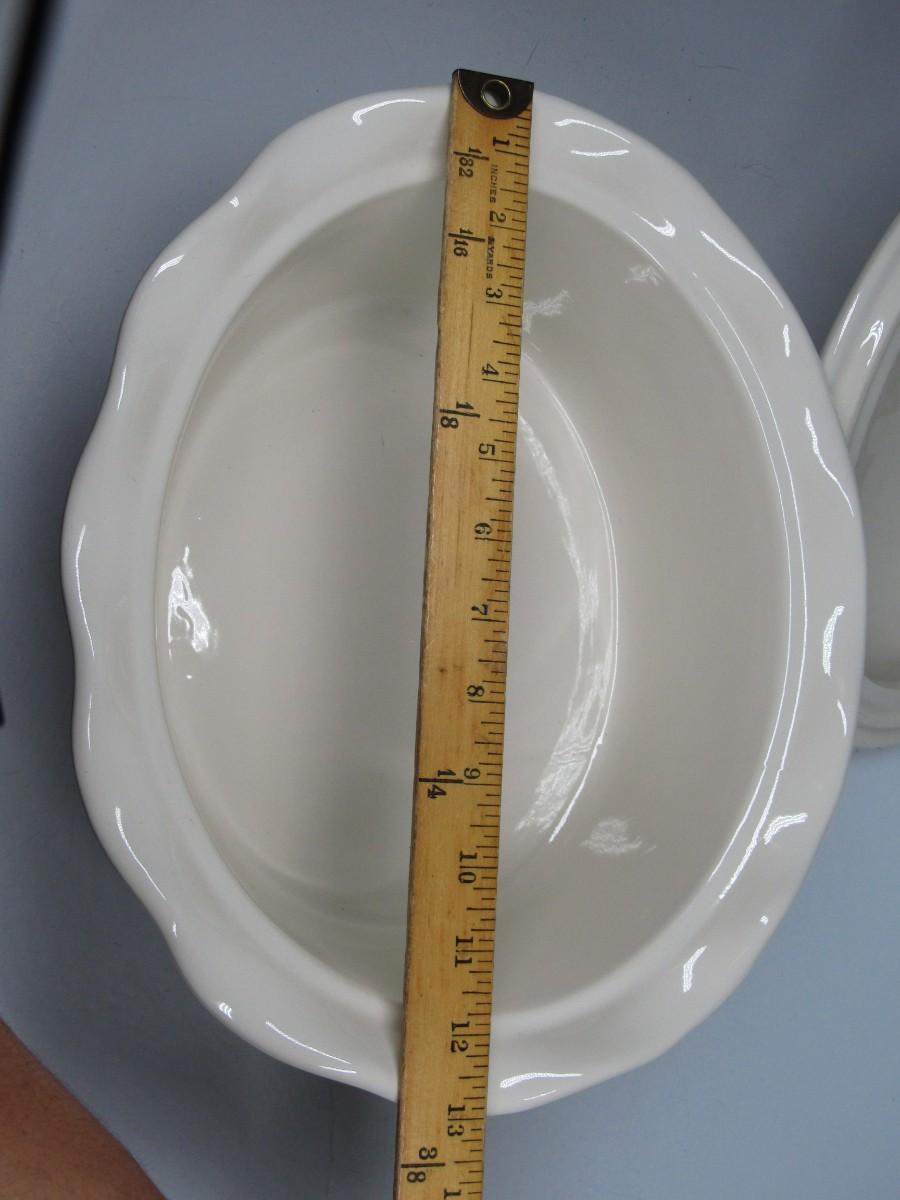 There is no damage to the dish and is in good condition. Check pictures for more details and sizing.