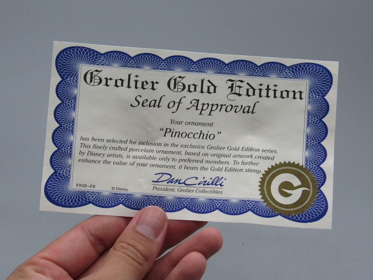 Walt Disney's Pinocchio Grolier Gold Edition Christmas Ornament with Original Box