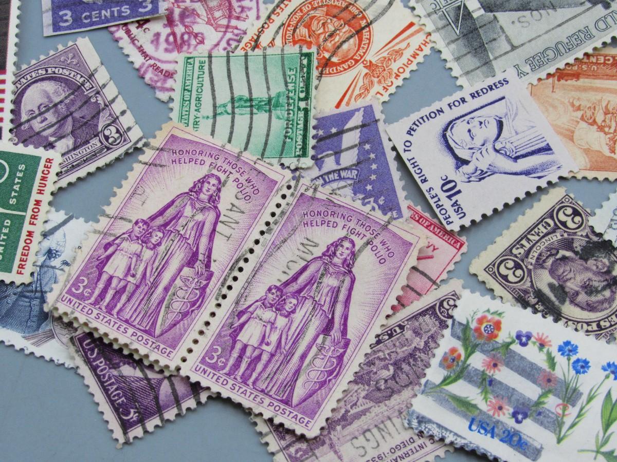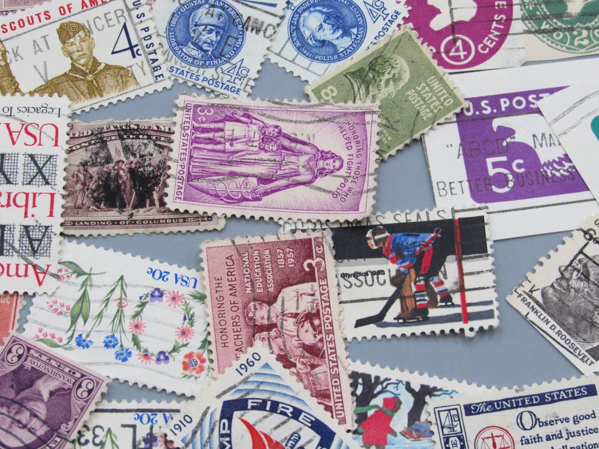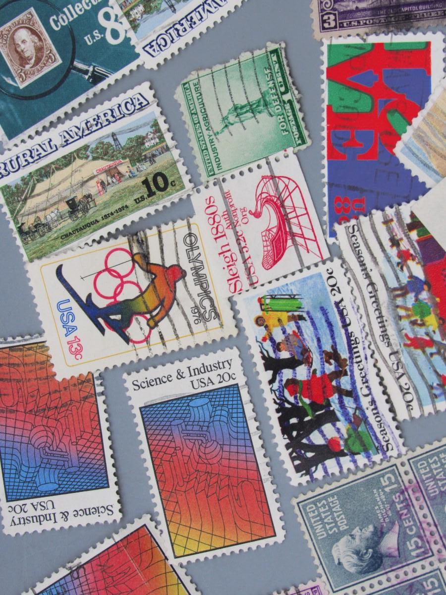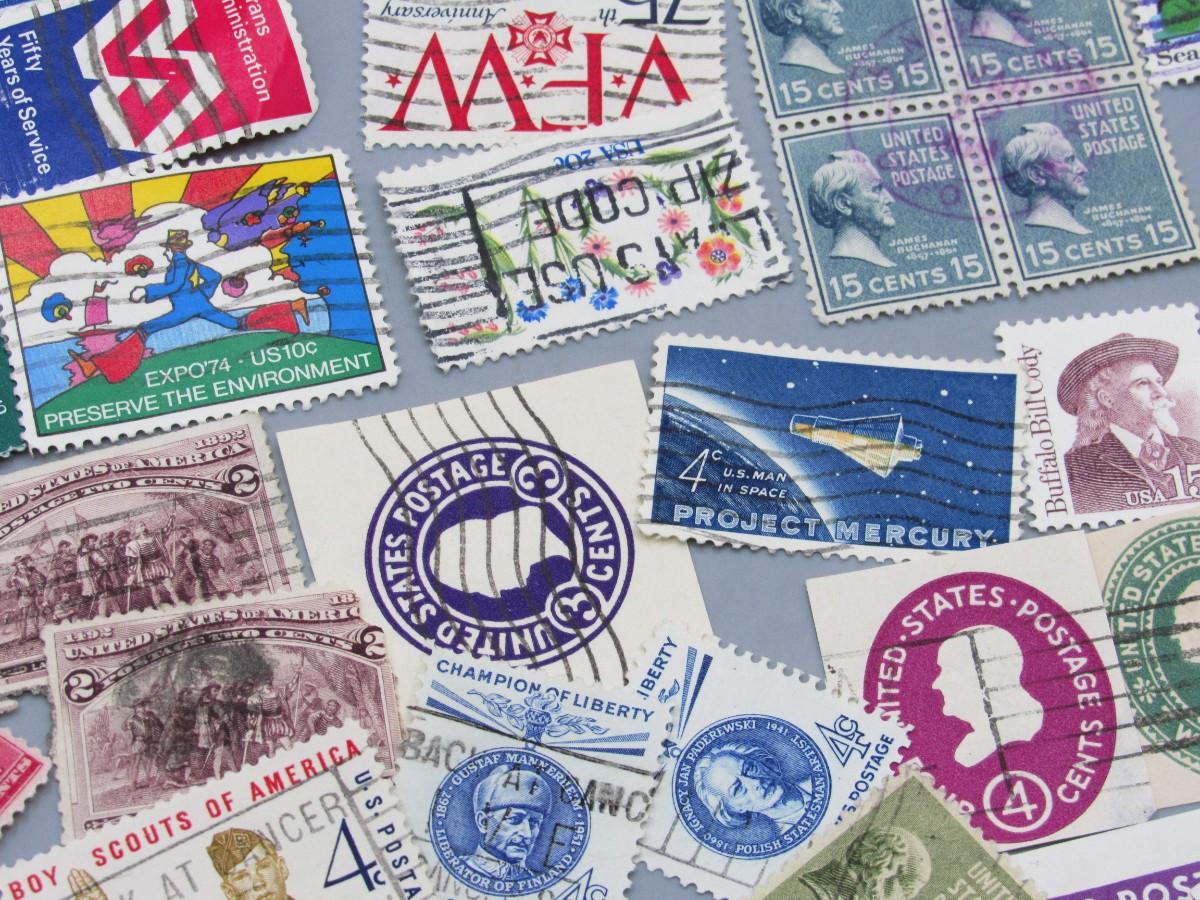 Lot of Vintage Collectible Used Mid Century Commemorative Mail Stamps