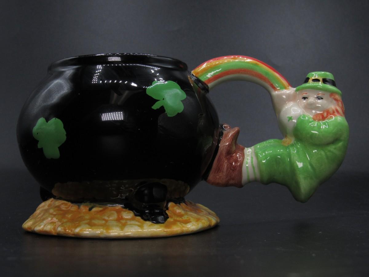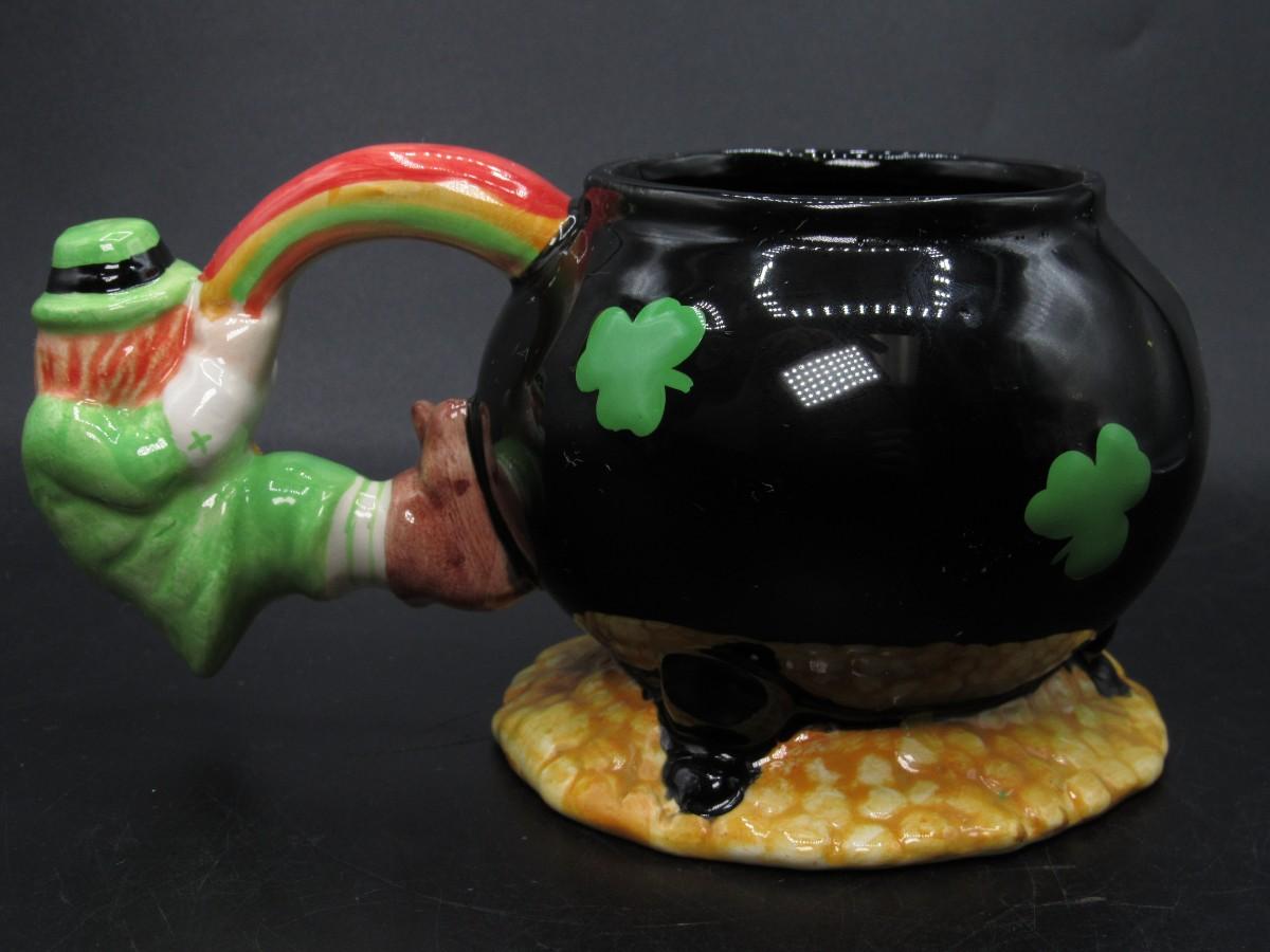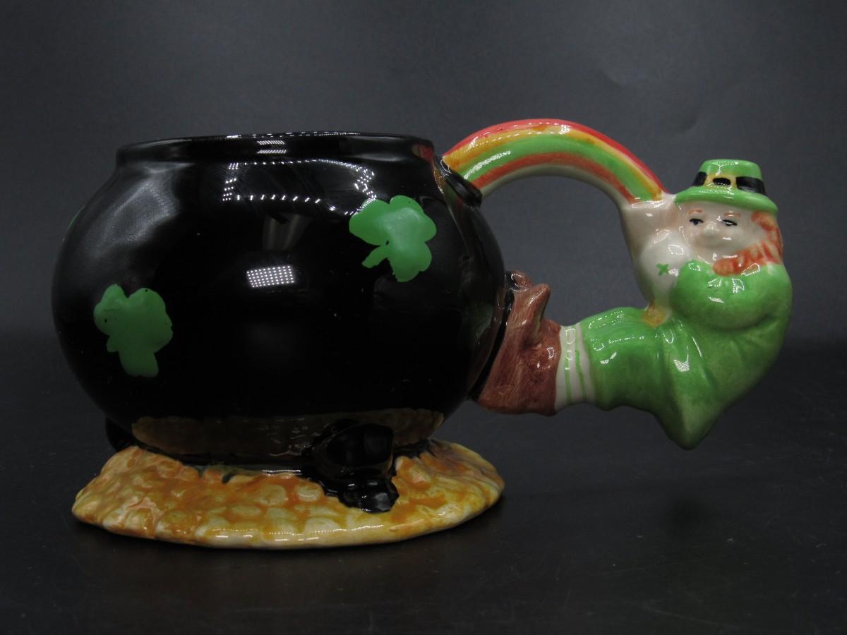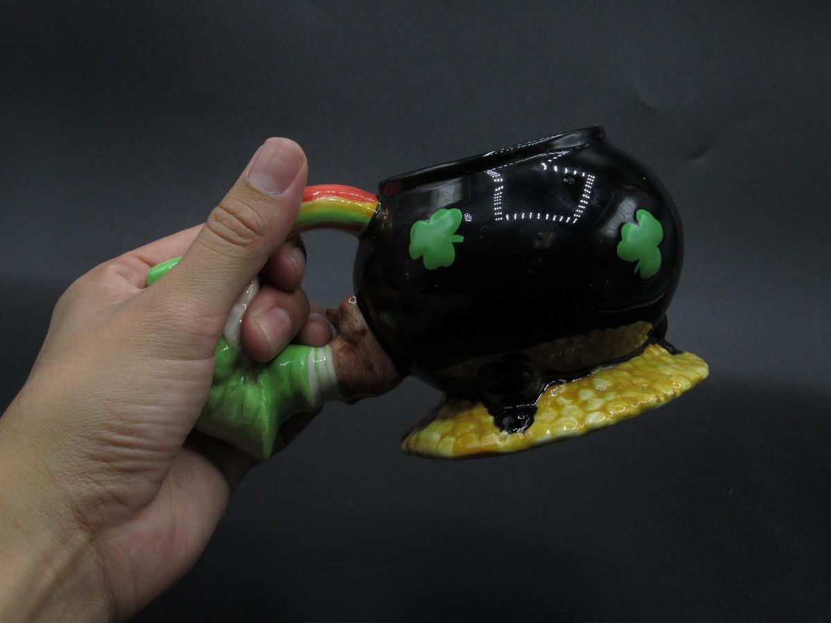 Papel Freelance Leprechaun Holding Rainbow Pot of Gold Four Leaf Clover Novelty Mug