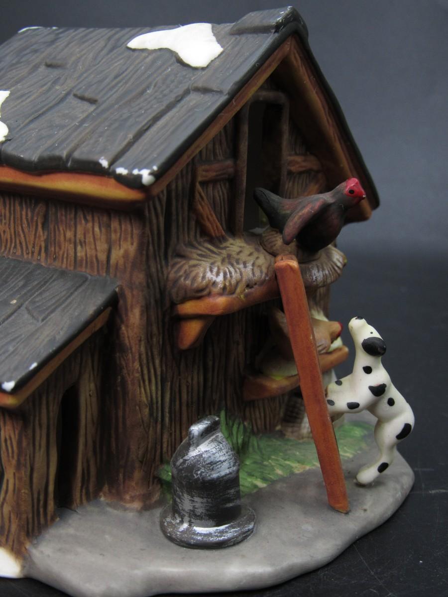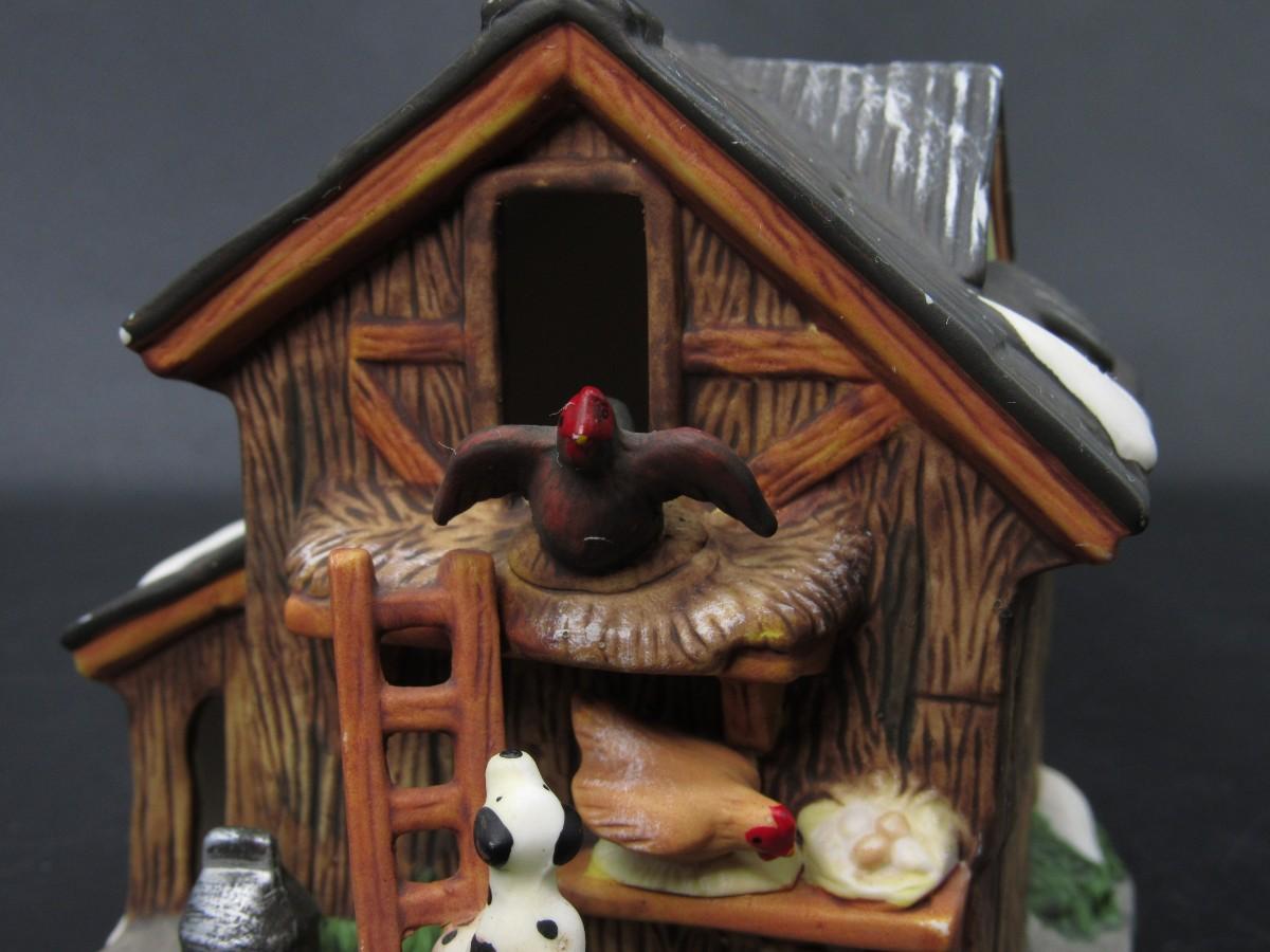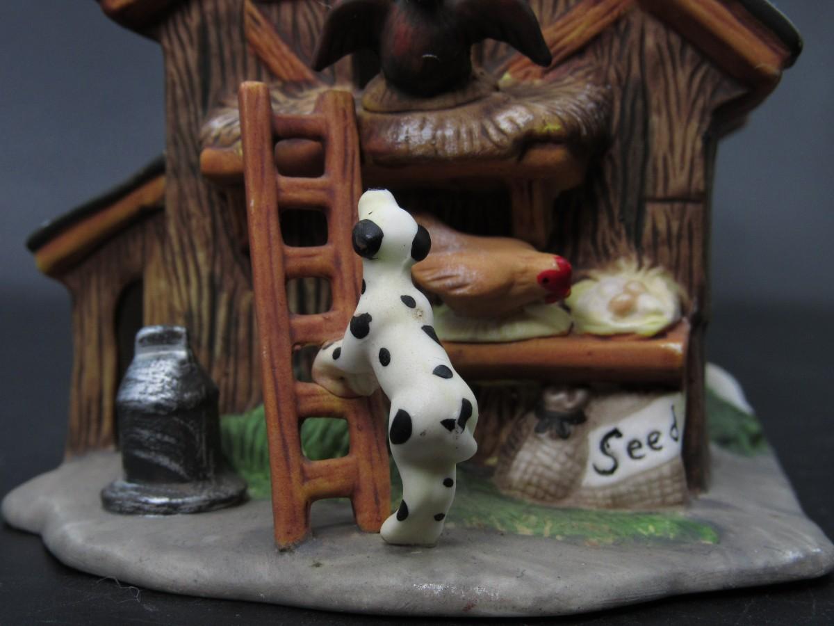 Snowy Rustic Farmhouse Chicken Coop Hens & Barking Dog Decorative Figurine
