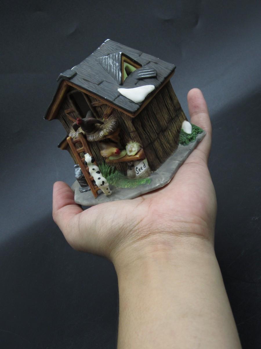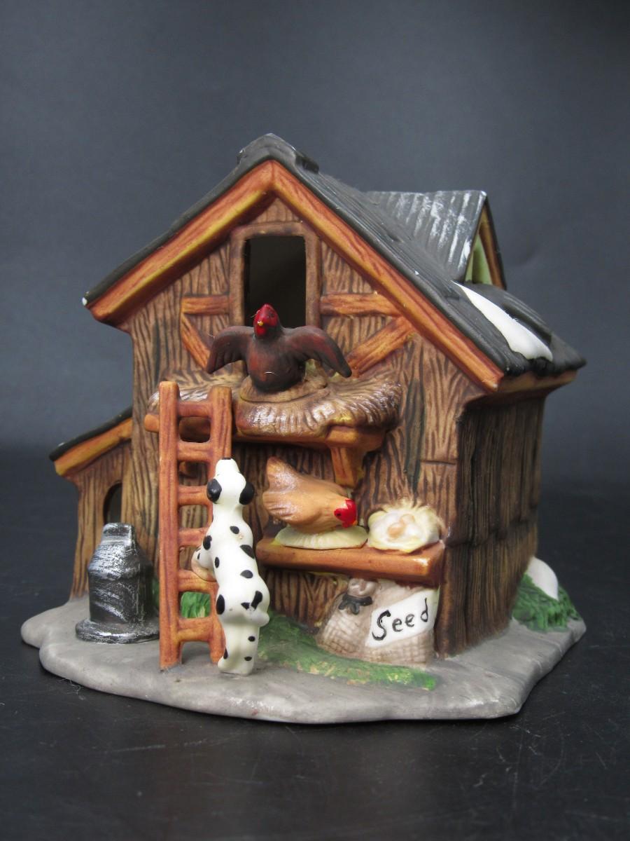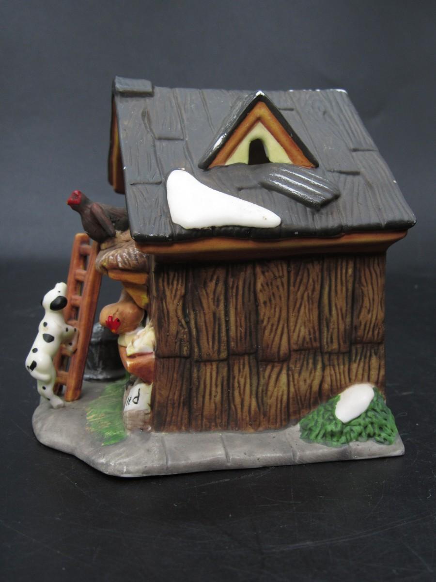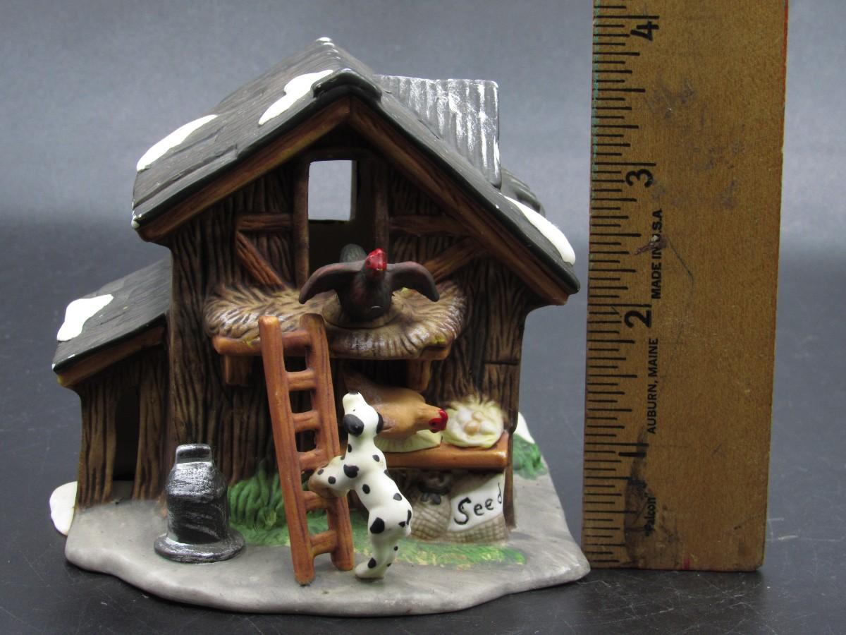 Snowy Rustic Farmhouse Chicken Coop Hens & Barking Dog Decorative Figurine
