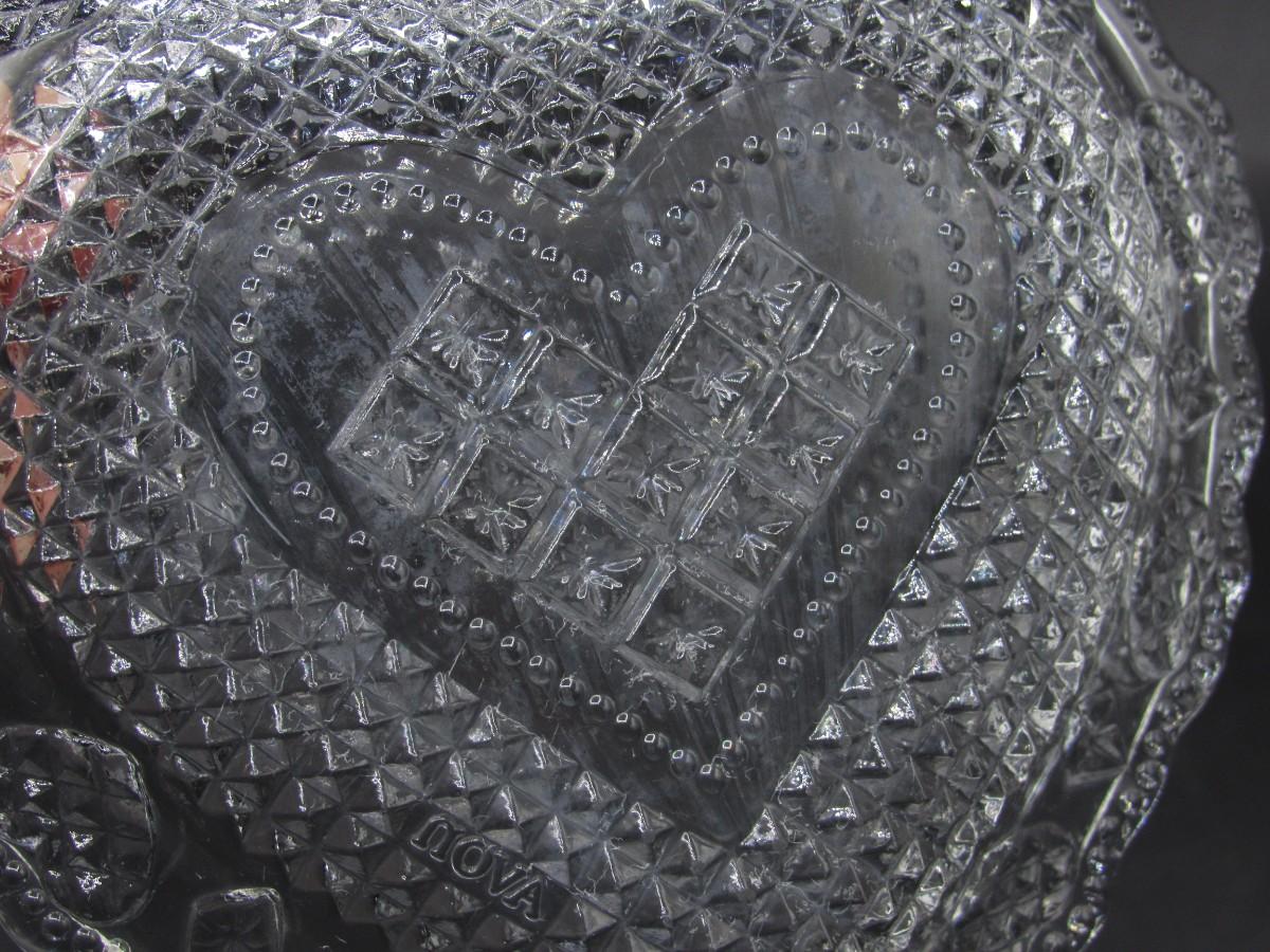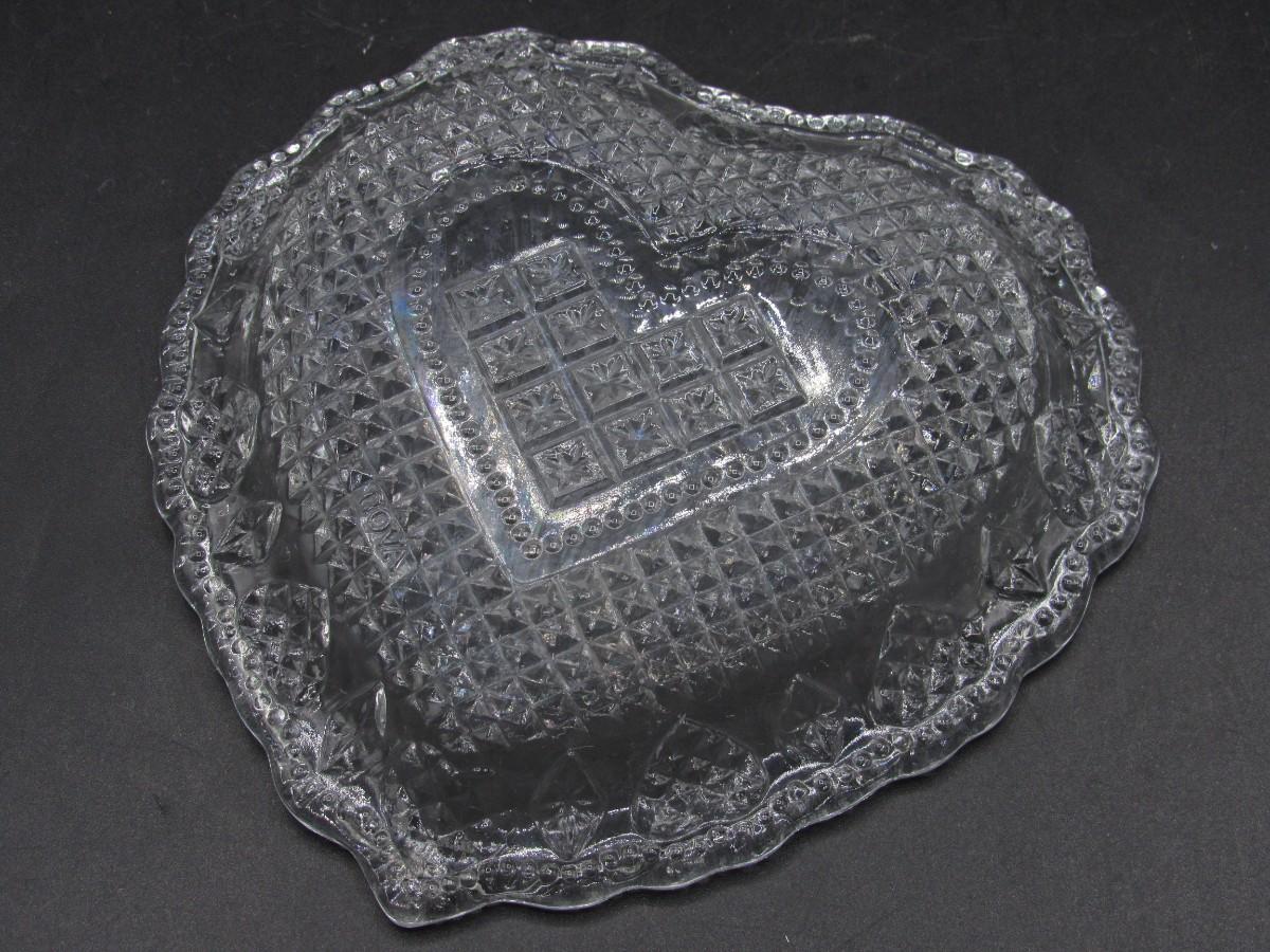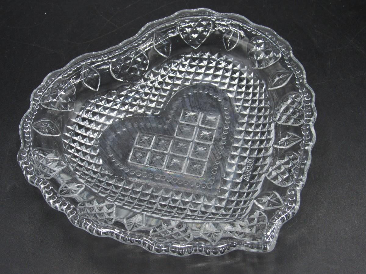 Vintage Fostoria Avon Cut Crystal Glass Heart Crochet Pattern Trinket Jewelry Dish