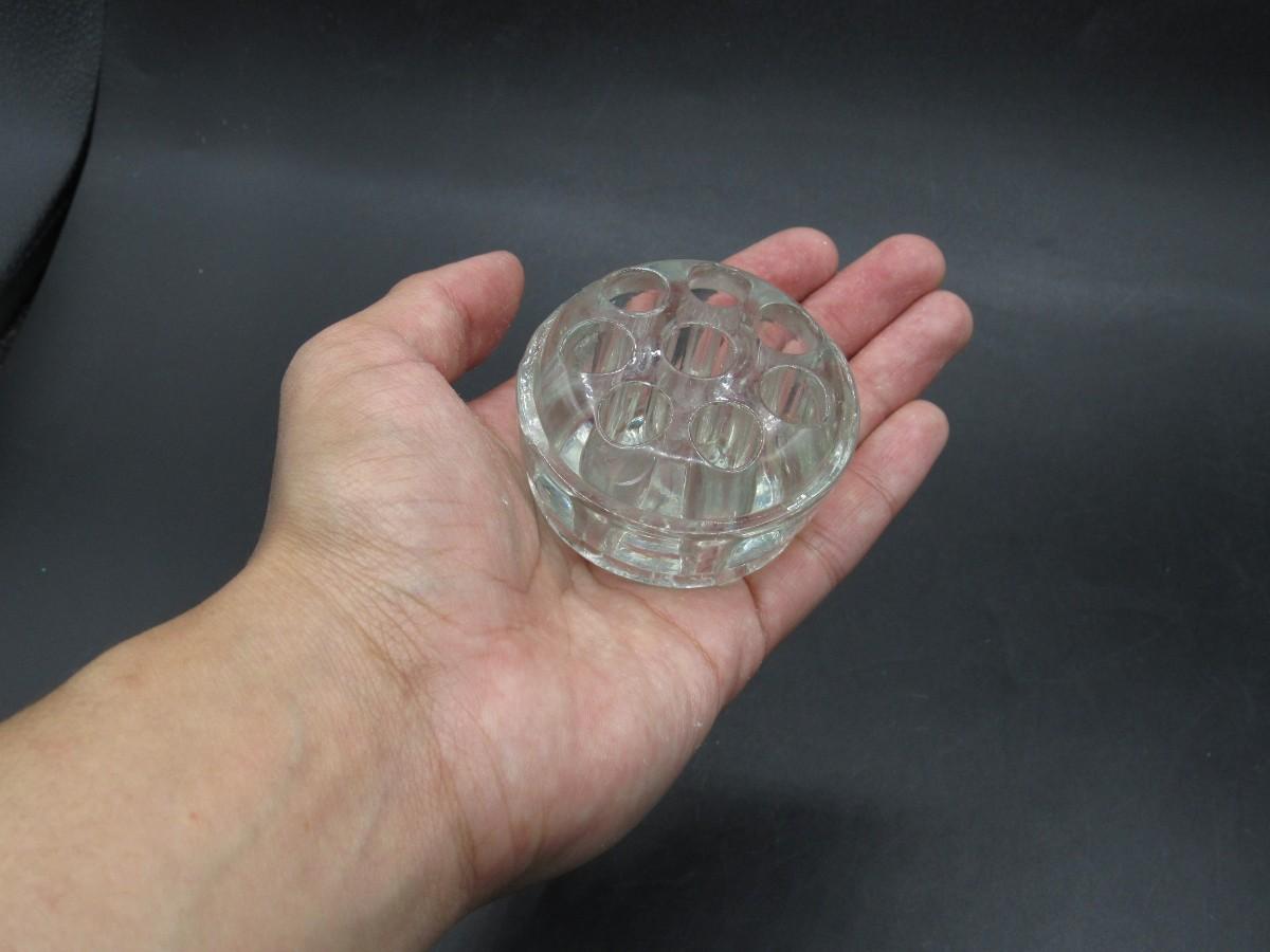 Small Clear Glass Art Deco Flower Arrangement Frog