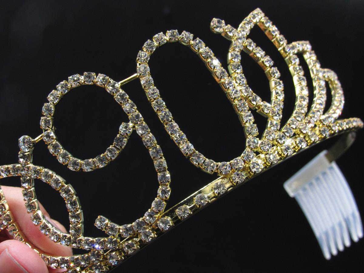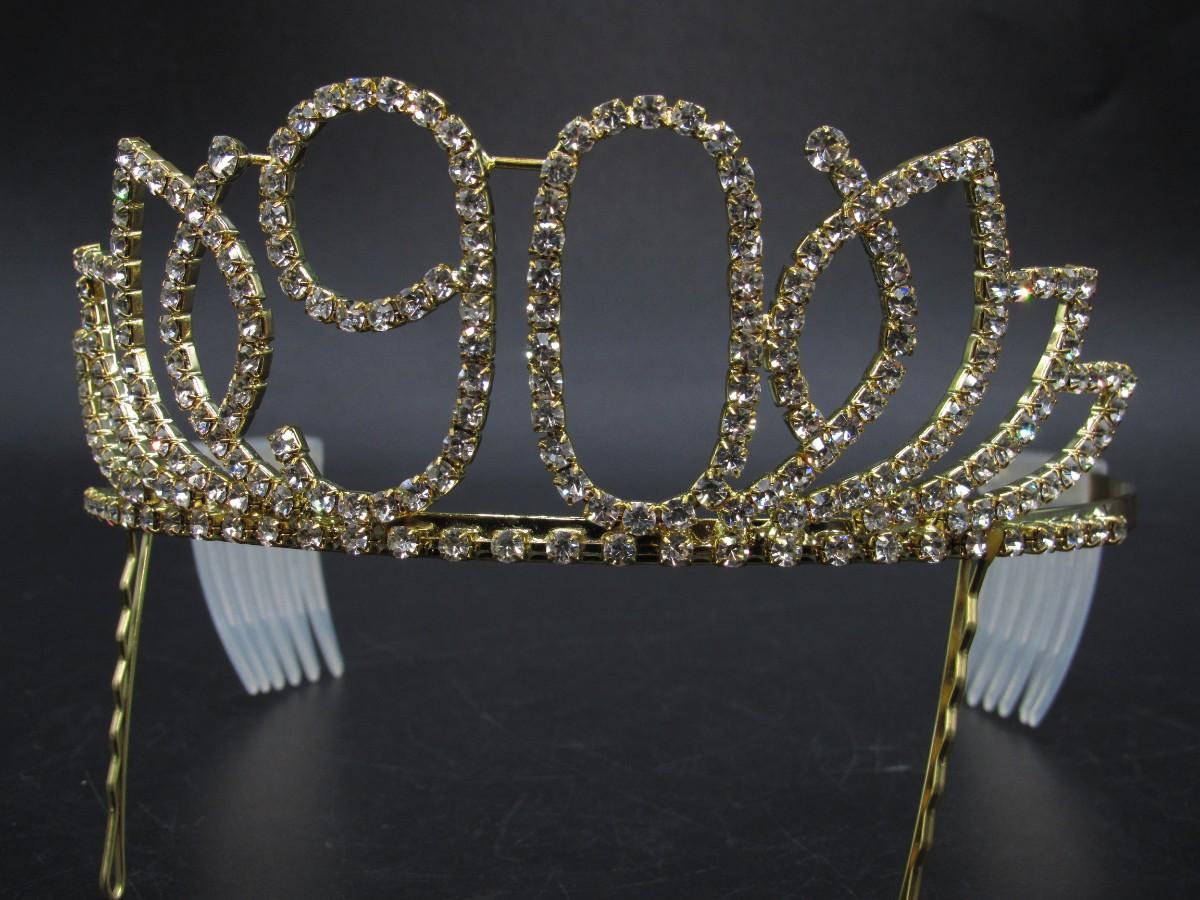 DcZeRong Womens 90th Birthday Celebration Queen Faux Diamond Rhinestone Tiara Crown