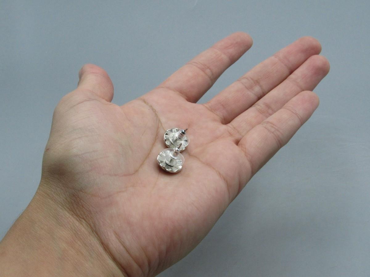 Pair of Blue Rhinestone Button Earrings with CZ Clear Rhinestone Halo in Silver Tone Setting