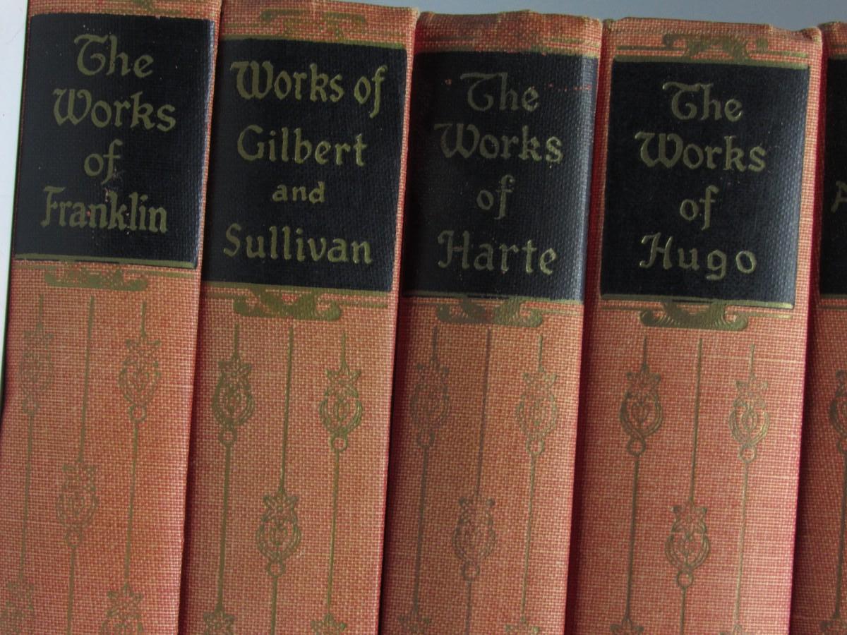 Vintage Lot of Hardcover Compilation Books The Works of. Each book contains various works from a single author. See photos for those included. In good condition. 12 book set. From Black's Readers Service Company, 1928.