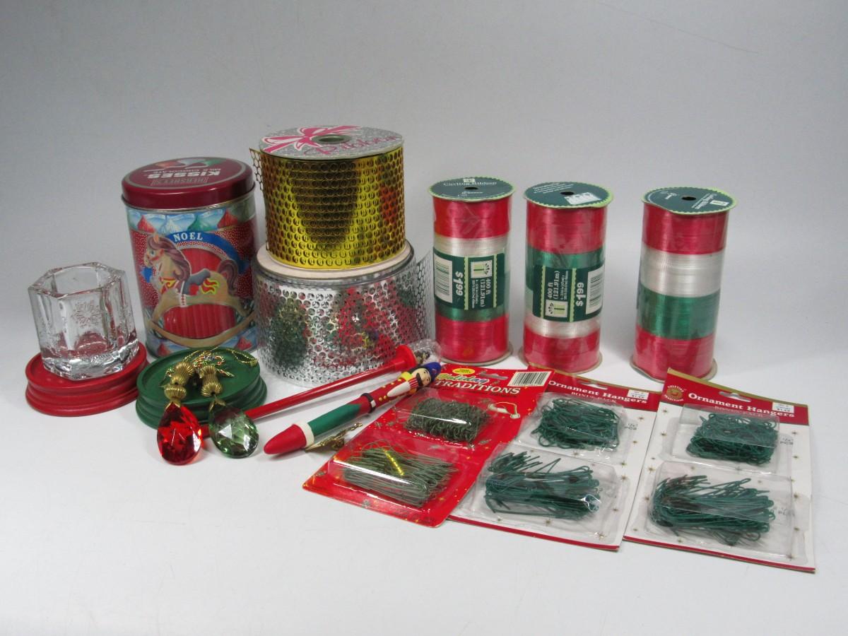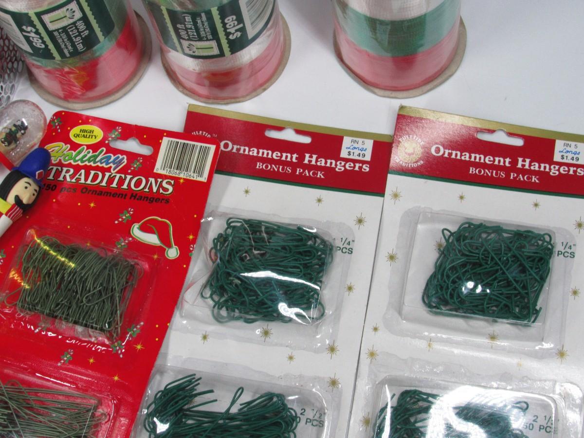 Lot of Christmas Present Wrapping Ribbon, Ornaments Hangers, & More