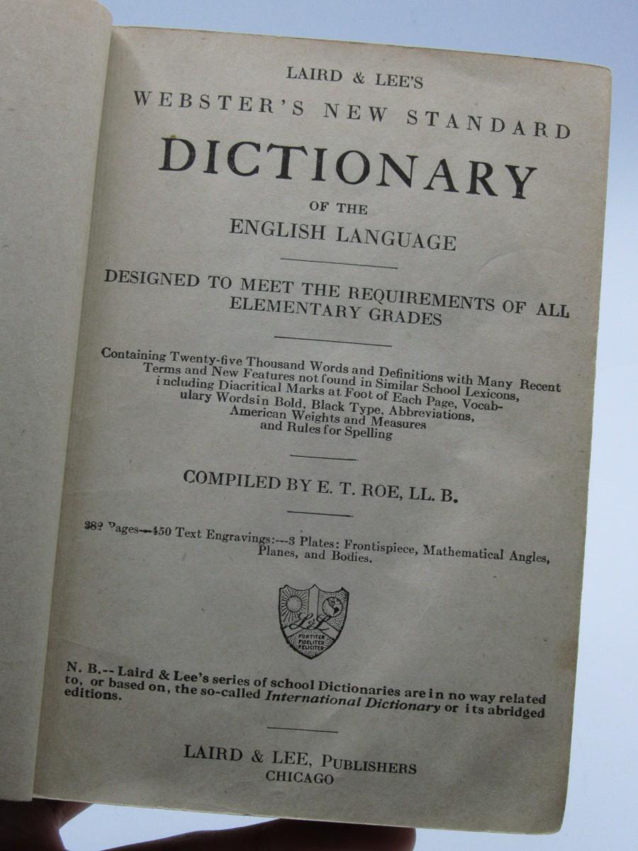 Antique Laird & Lee's Webster's New Standard Illustrated Dictionary Elementary School Edition Book