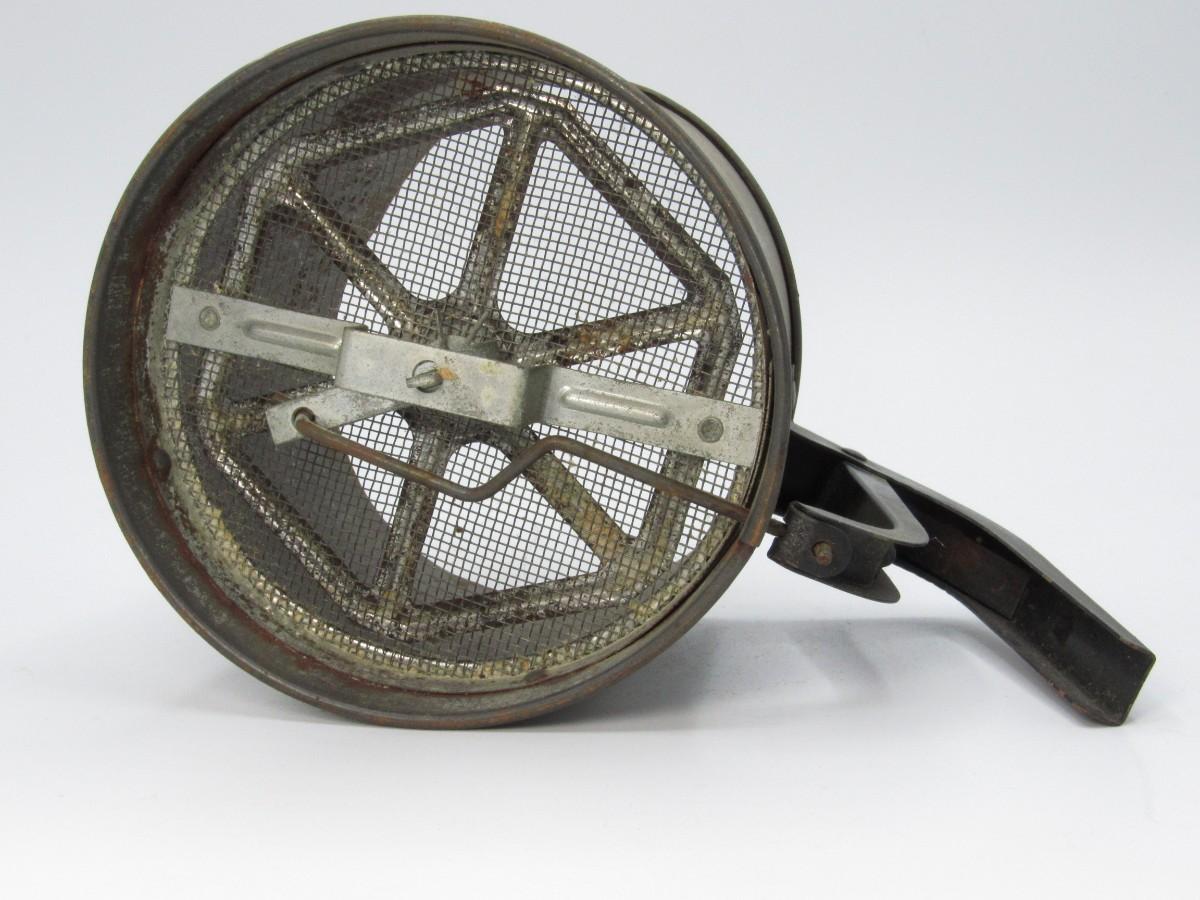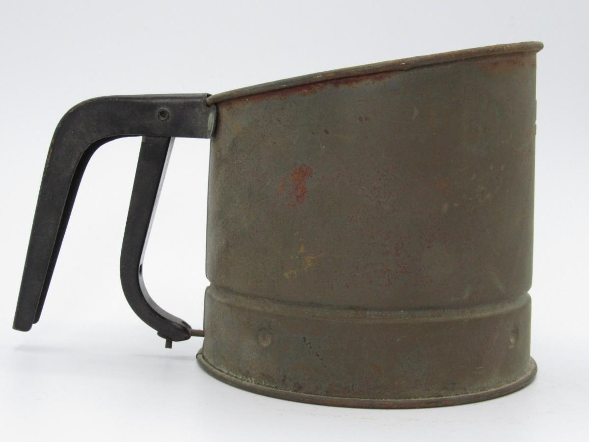 There is noticeable wear to the metal sifter, but there is no significant damage and is in good useable condition. The trigger mechanism works!