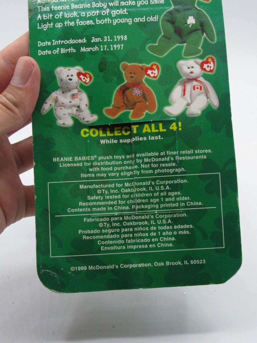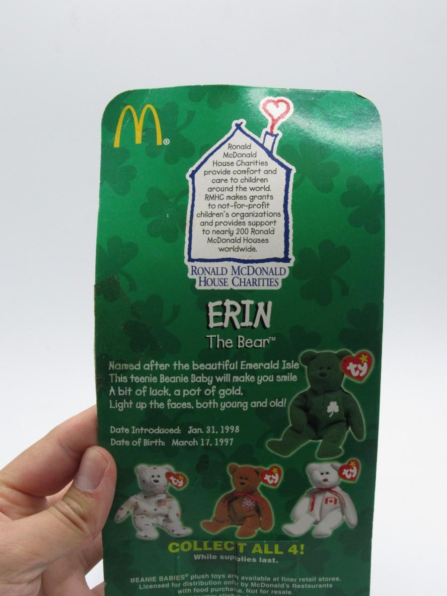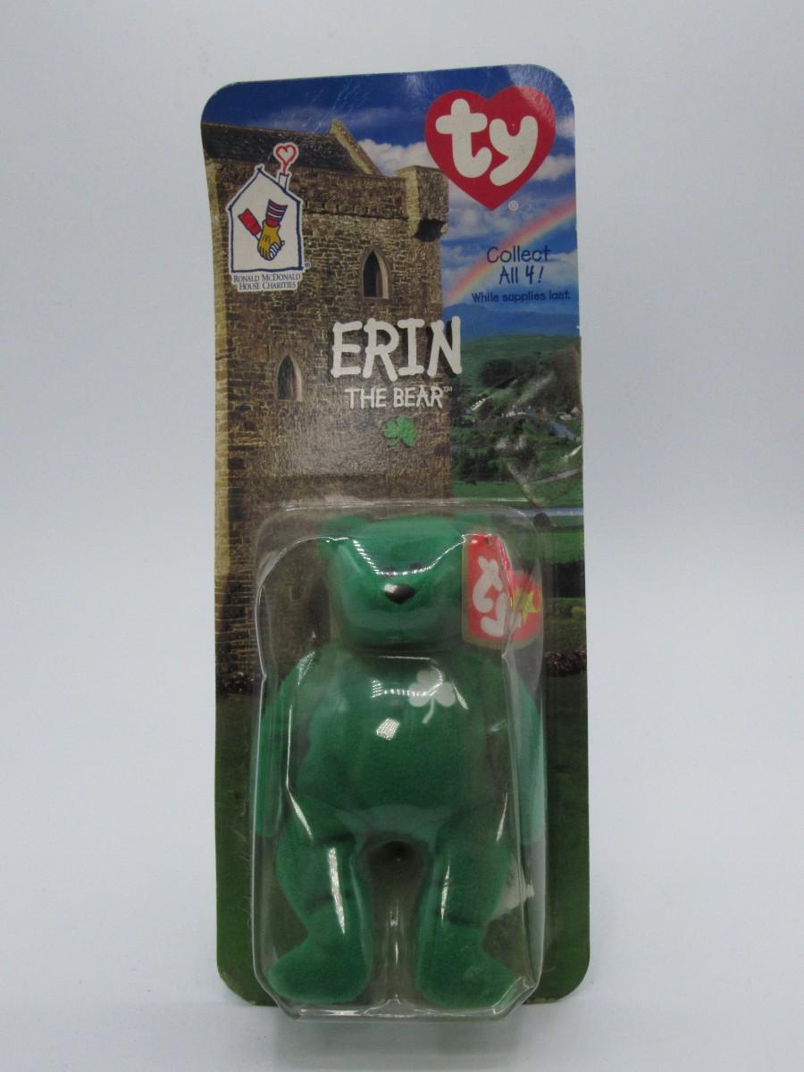 Retro Collectible McDonalds Erin The Bear Beanie Babies Plush Toy Unopened in Original Box