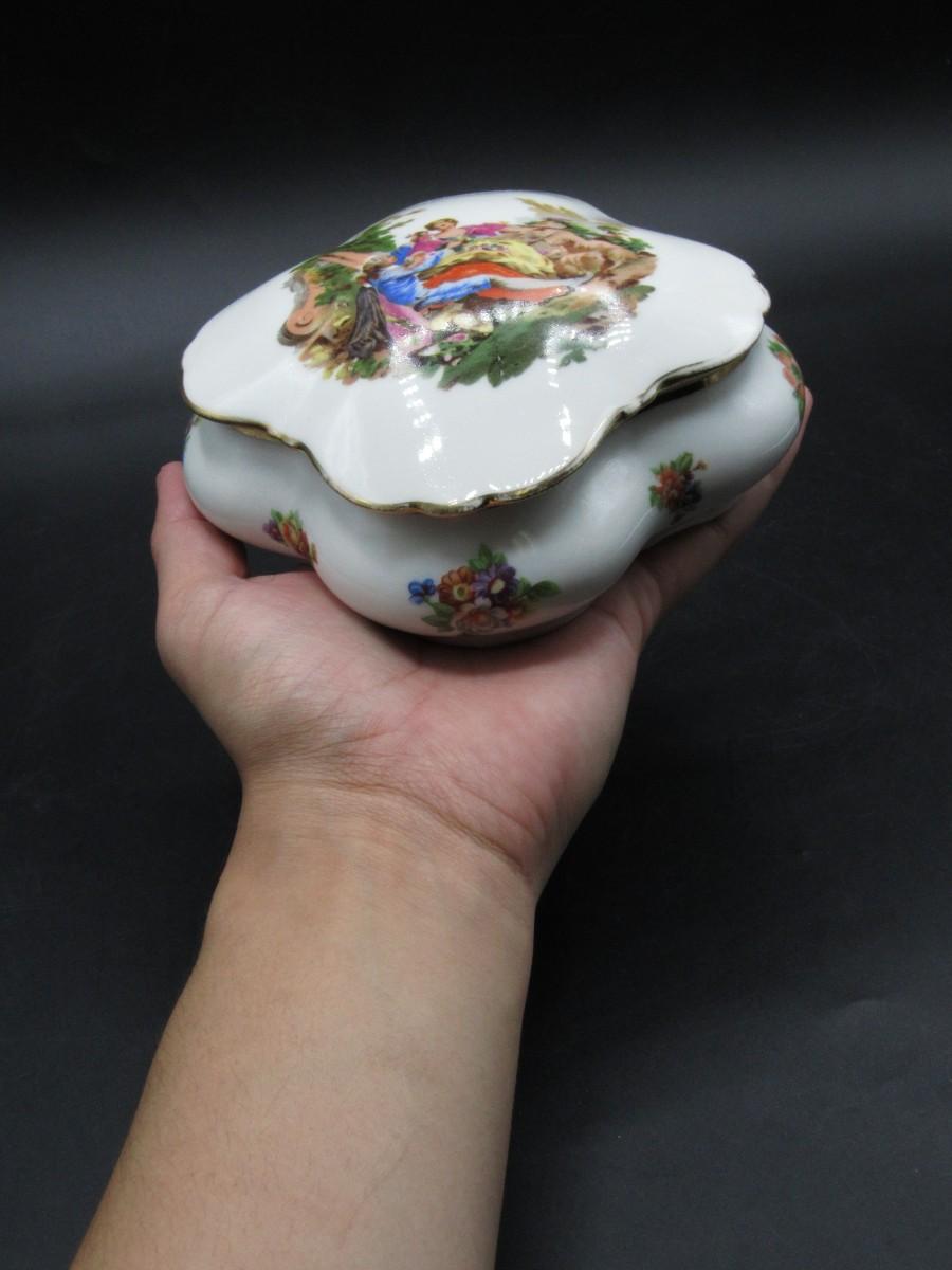 Vintage Limoges Porcelaines Pallas France Regal Victorian French Design Lidded Trinket Dish