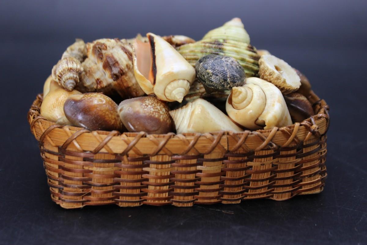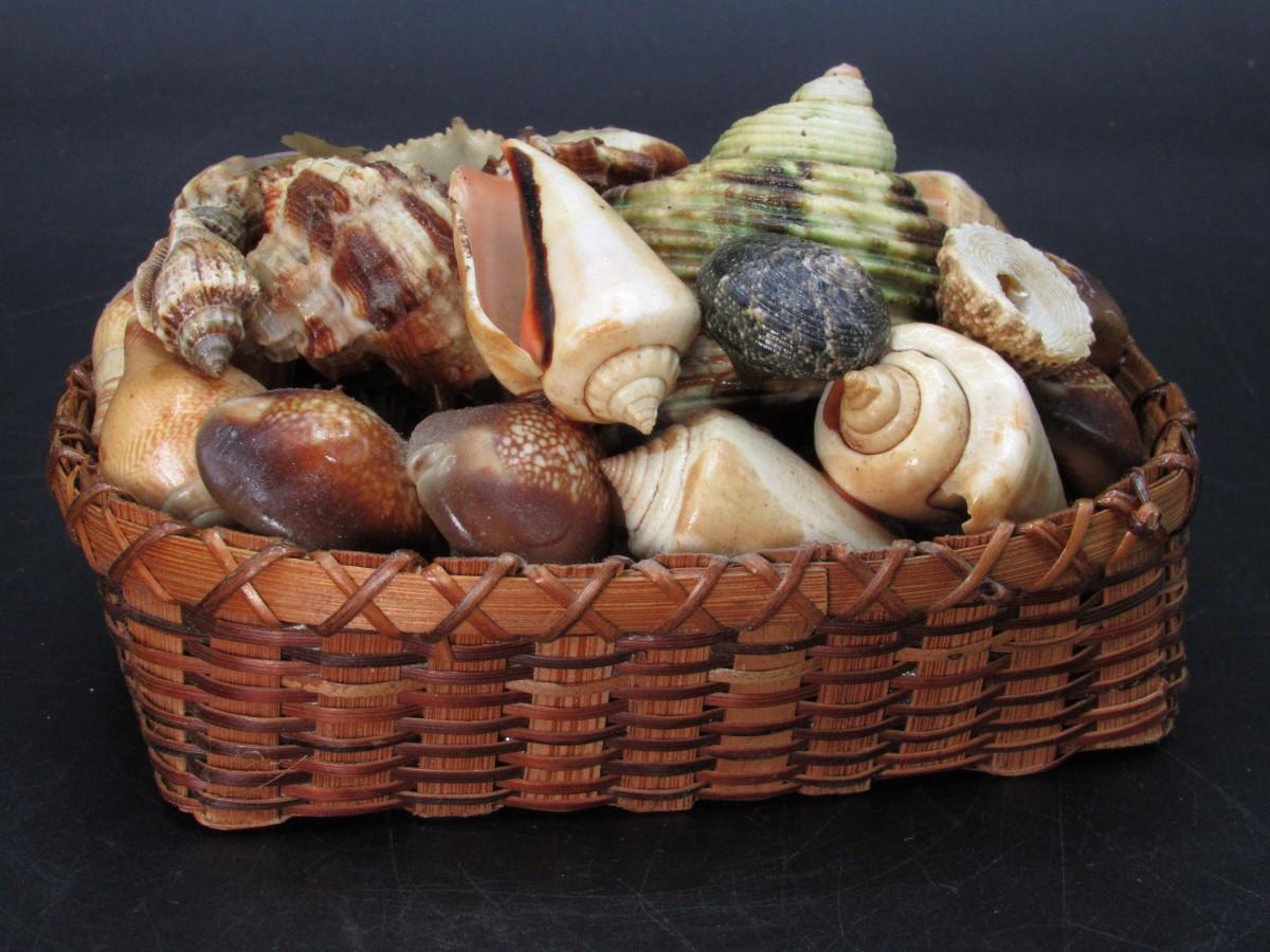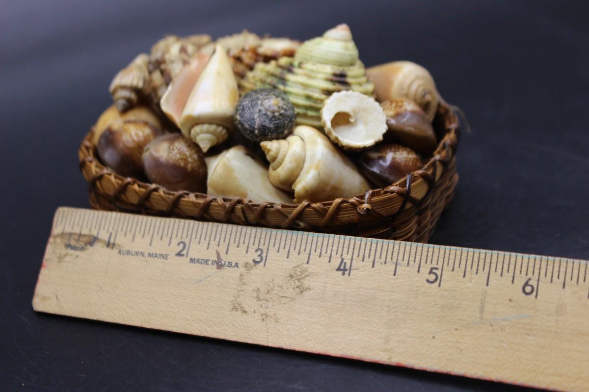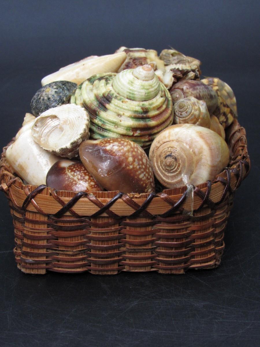 Retro Crafted Seashells in Basket Nautical Home Decor