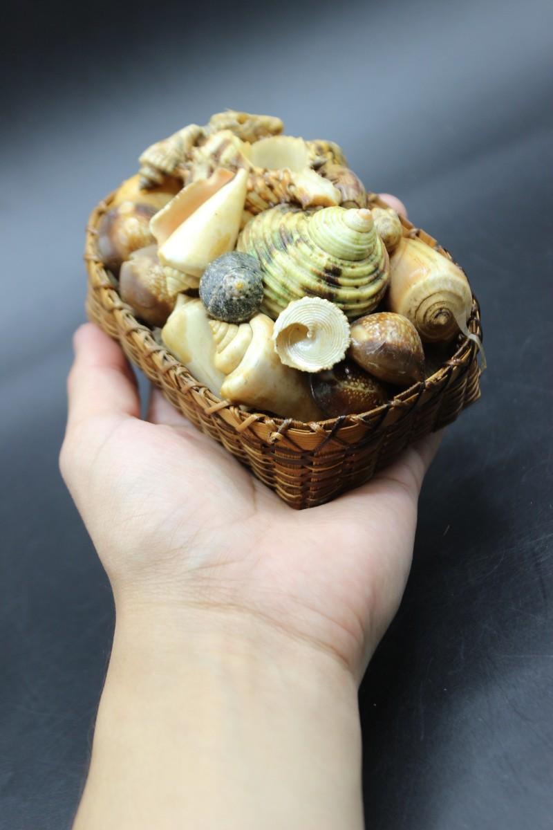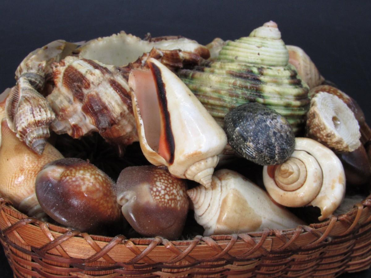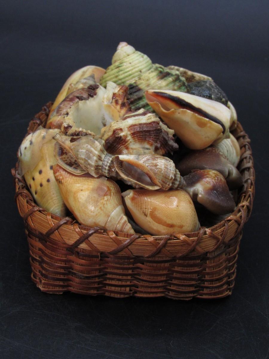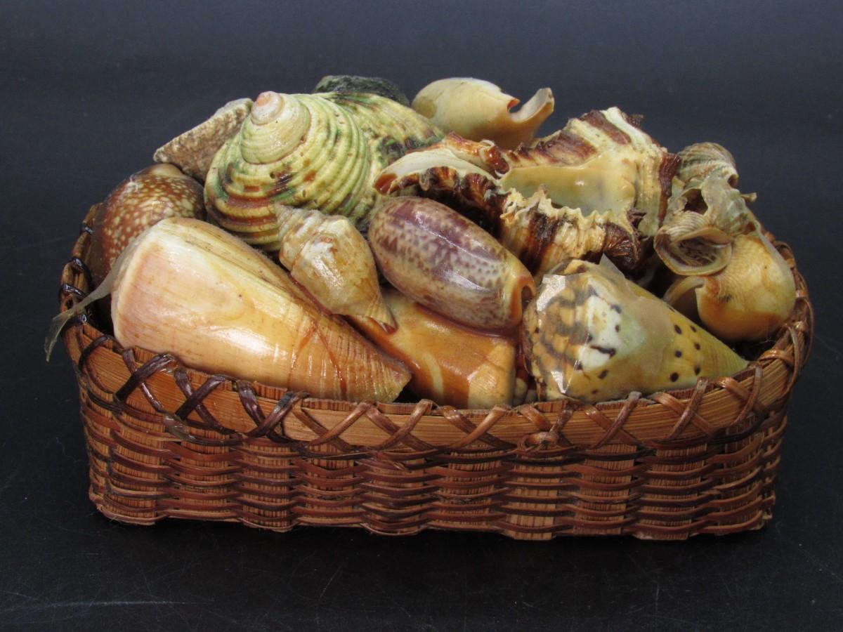 Retro Crafted Seashells in Basket Nautical Home Decor