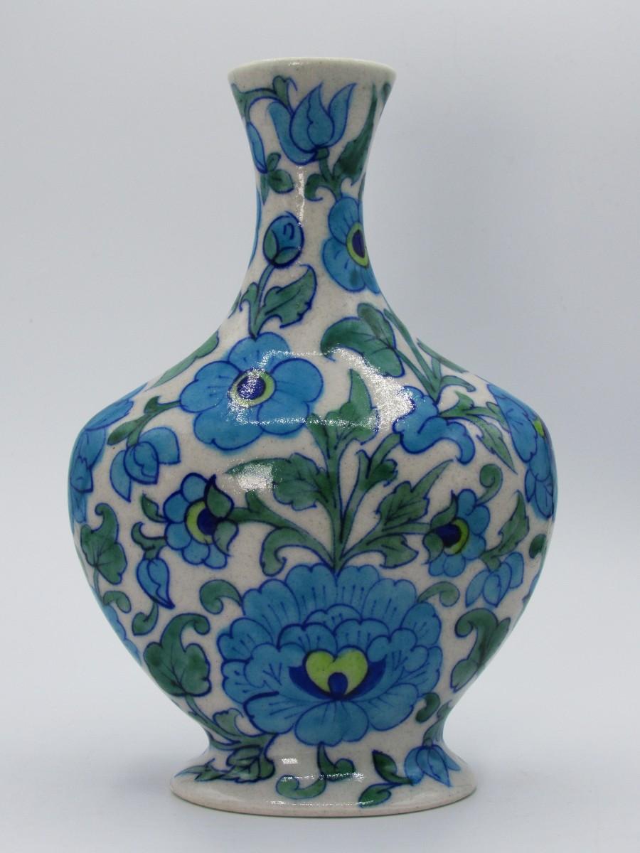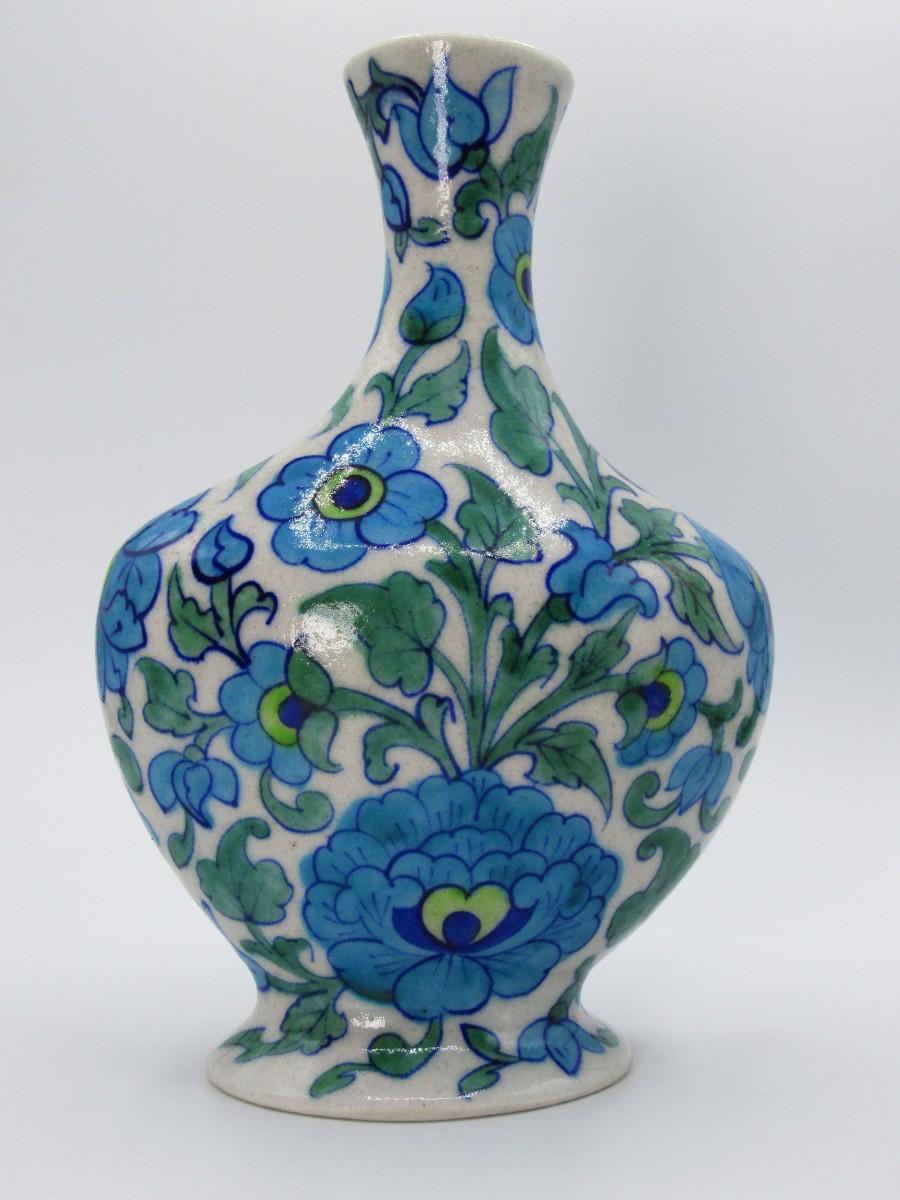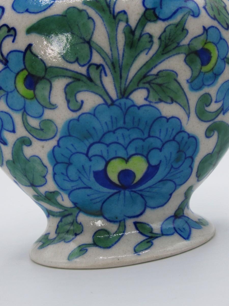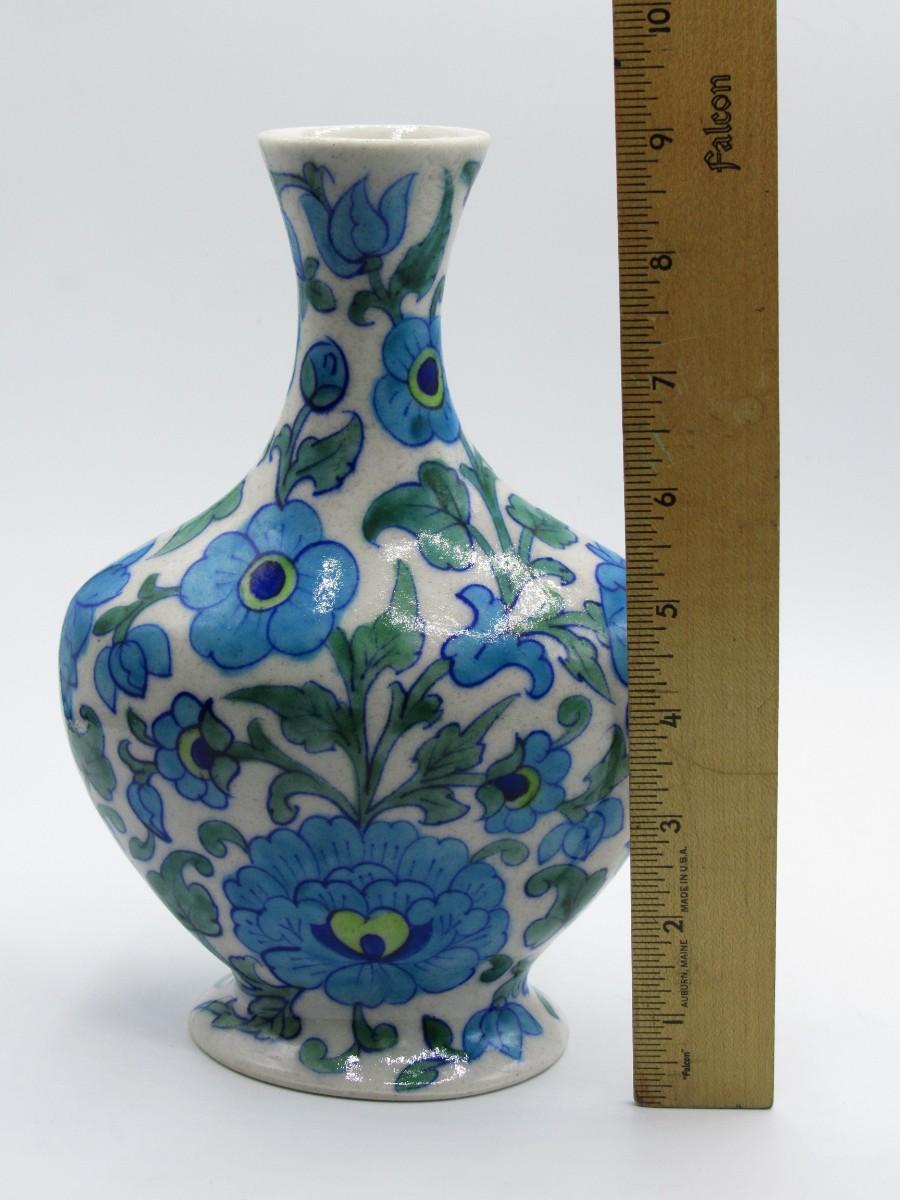 Vintage Turquoise Mid Century Pottery Art Intricate Flower Design Made in India Vase