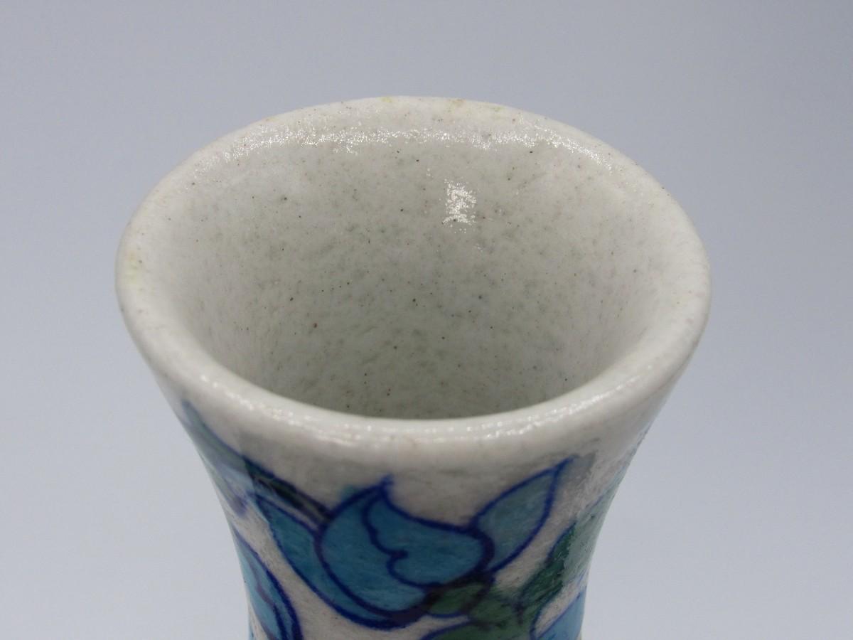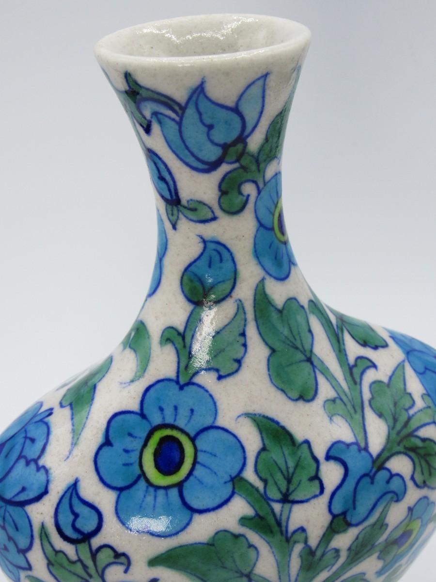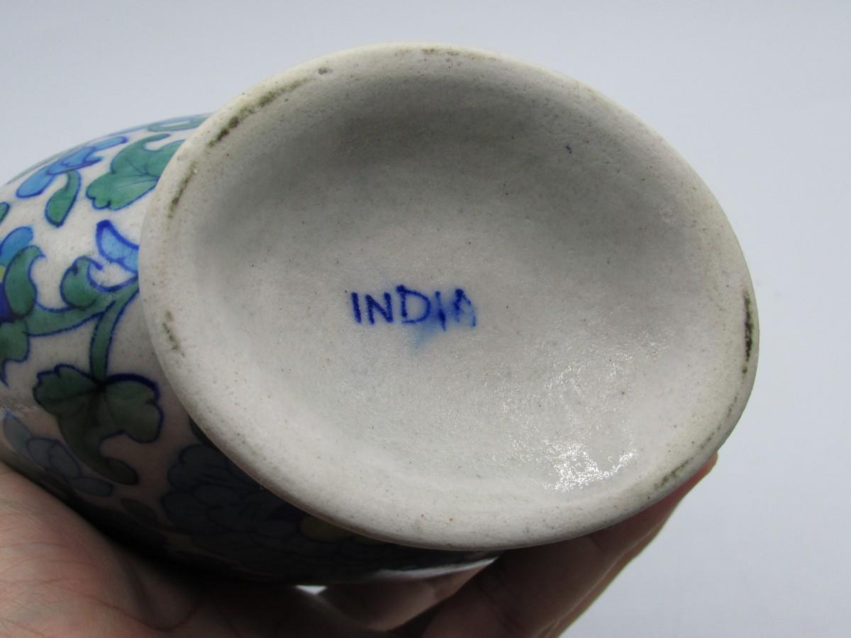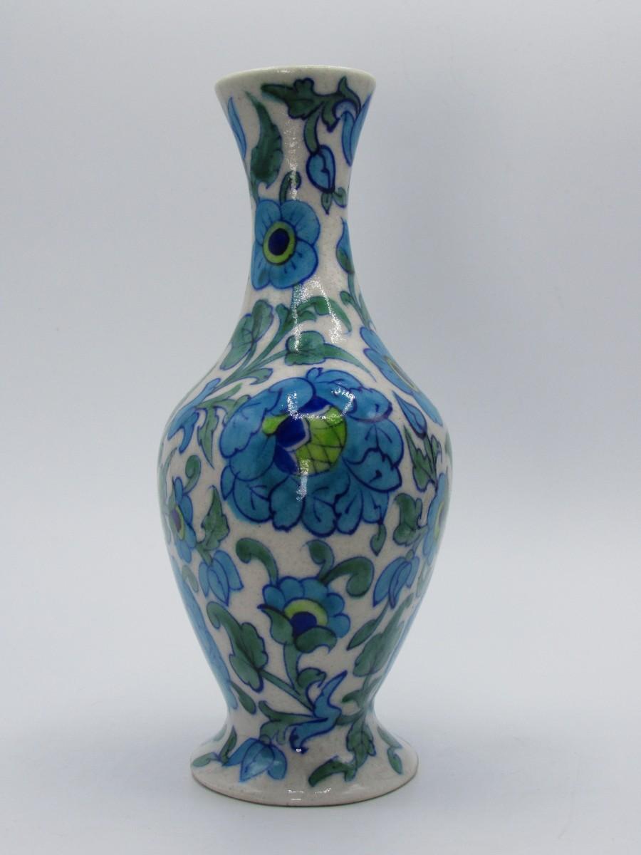 Vintage Turquoise Mid Century Pottery Art Intricate Flower Design Made in India Vase