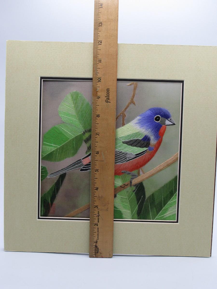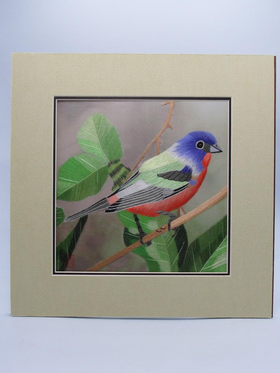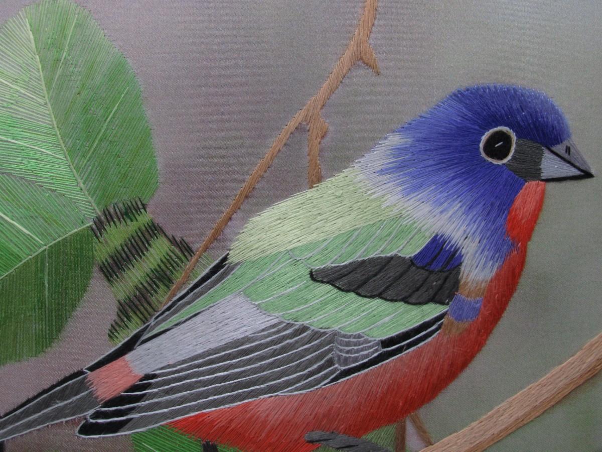 Susho King Bunting Silk Art Handmade Suzhou Silk Embroidery Bird Art