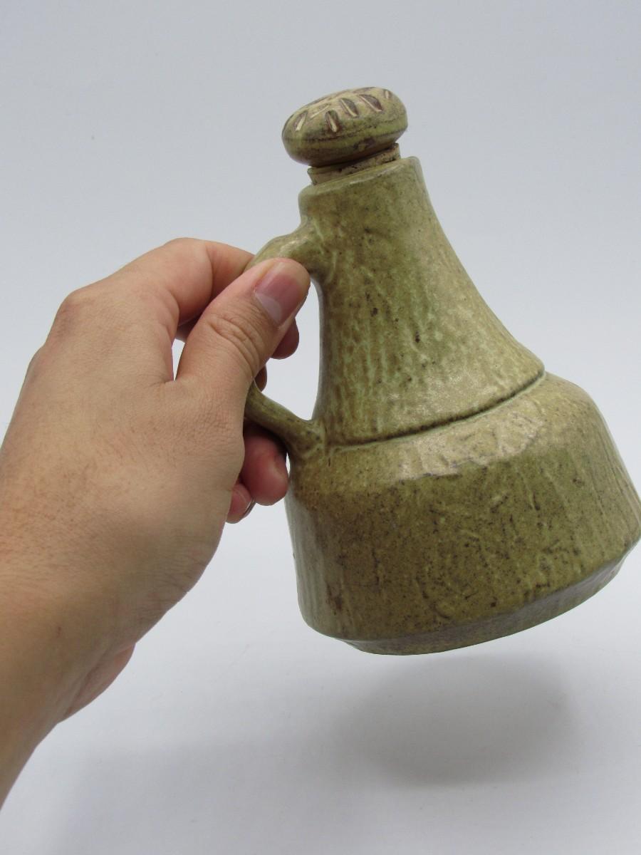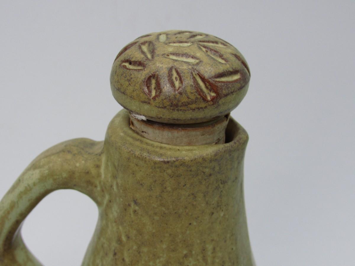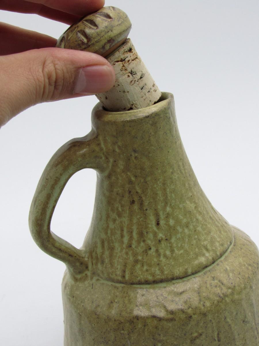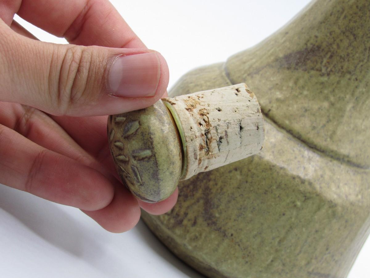 Vintage German Decorative Arts Candle Carvings Corked Jug Rustic Pottery Art Piece