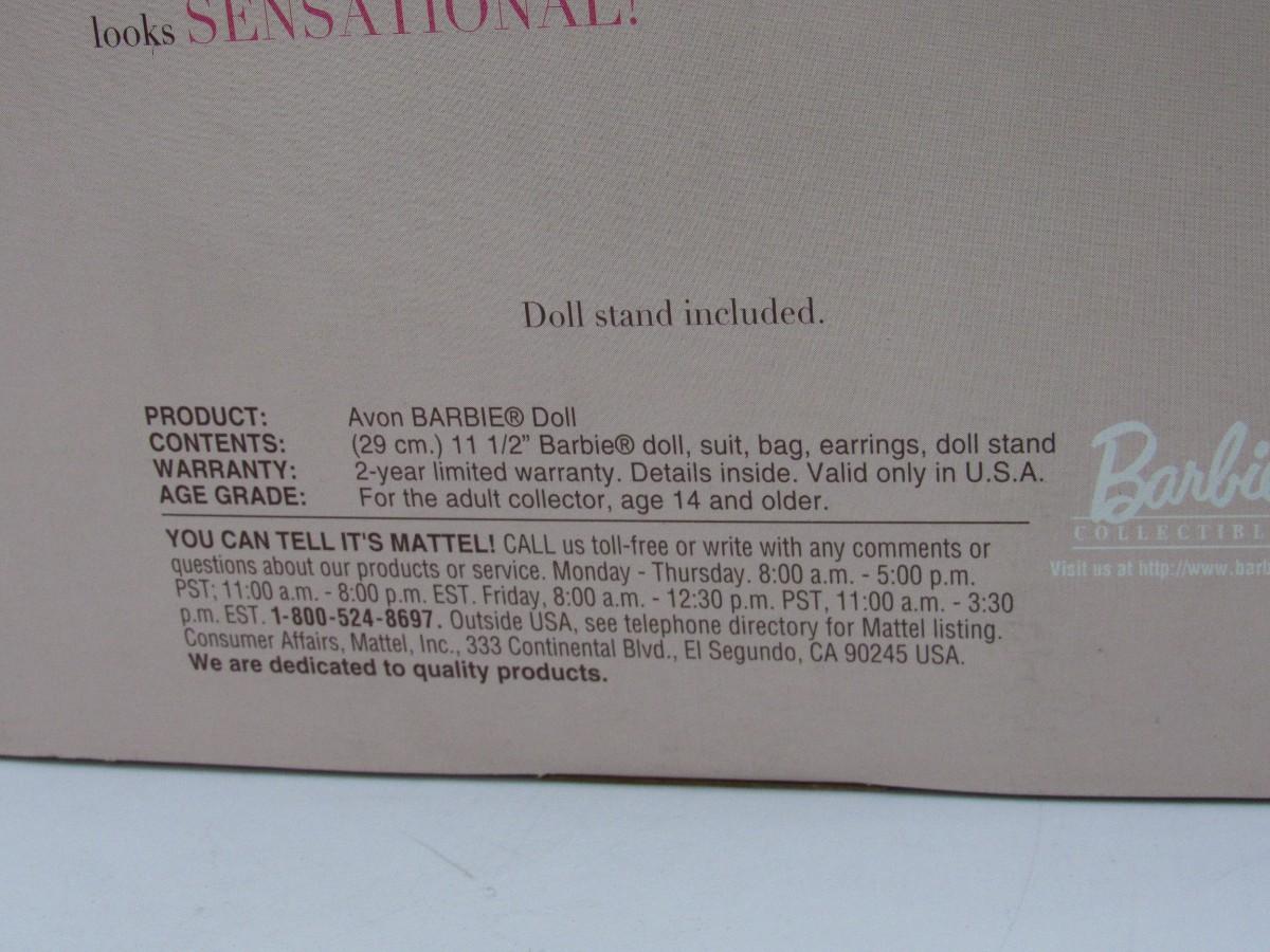 Barbie 1998 Avon #22202 Pink Black Tweed Business Skirt Power Suit Avon Sales Representative