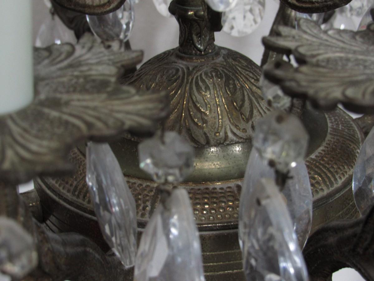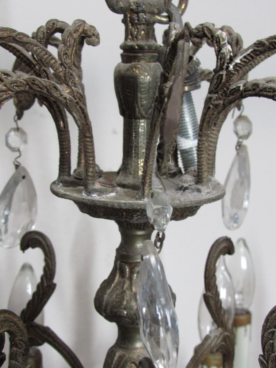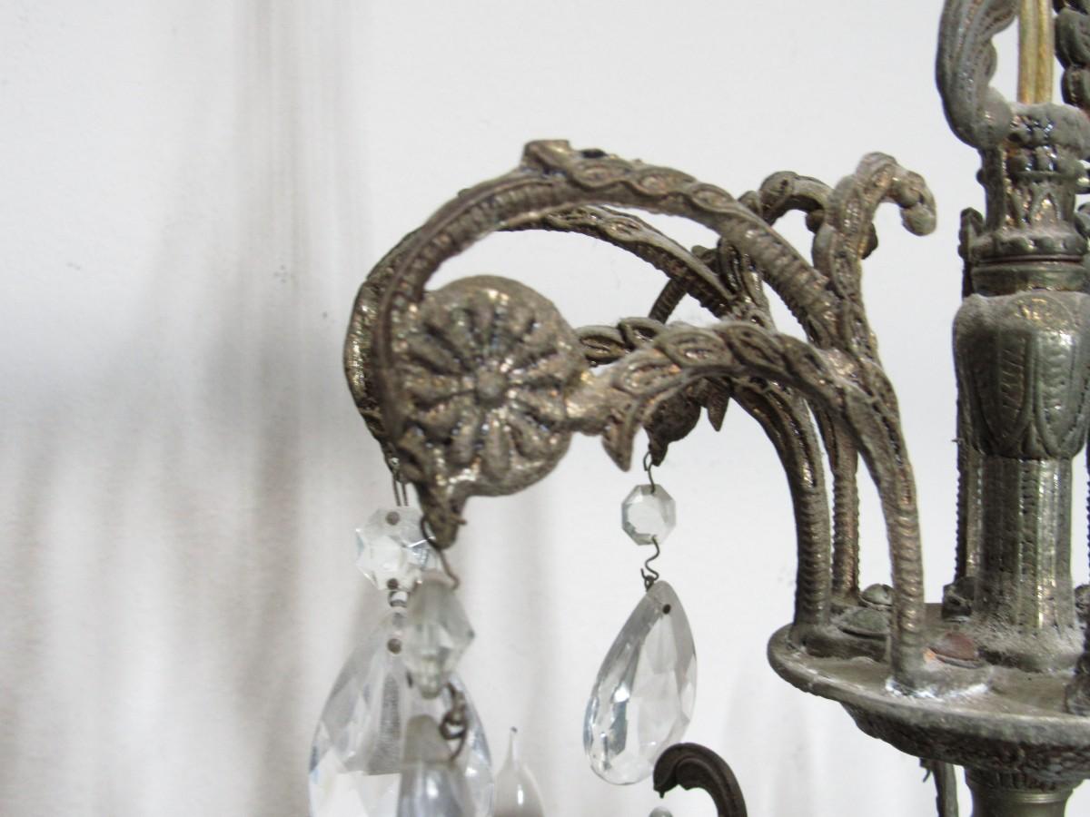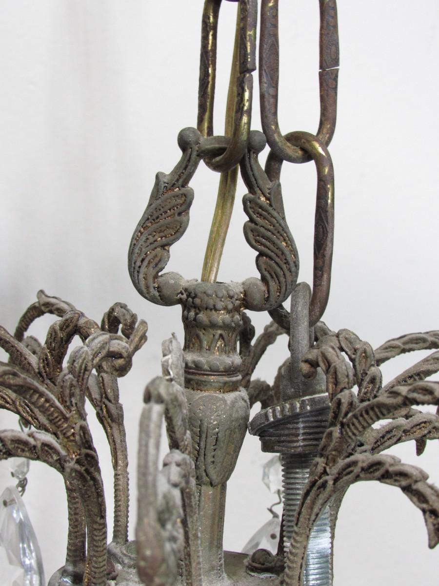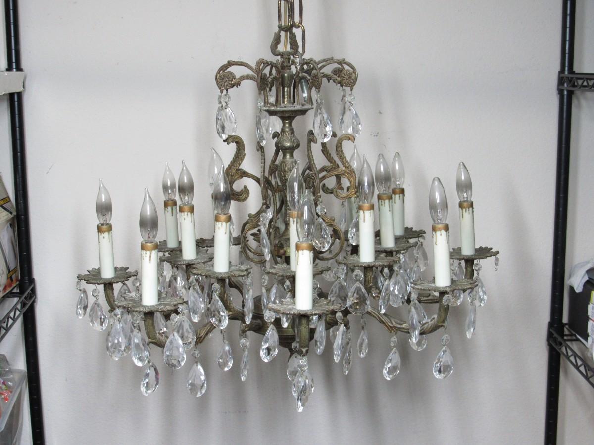 Vintage Art Deco Mid Century Hanging Brass & Crystal Glass Light Bulb Candlestick Chandelier