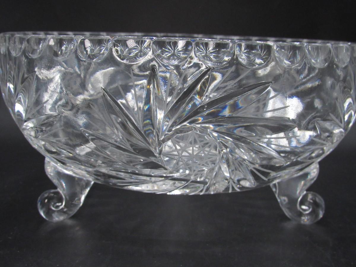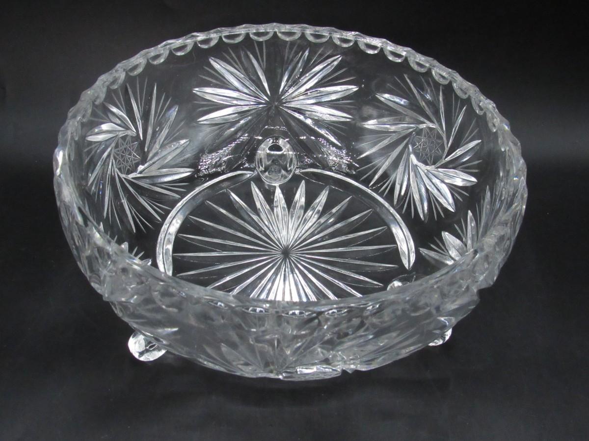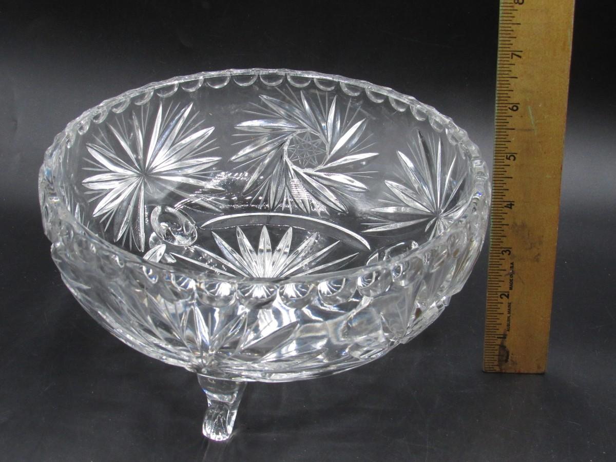 Vintage Anna Hutte Crystal Glass Bowl Stars Pinwheels MCM Design Trinket Bowl