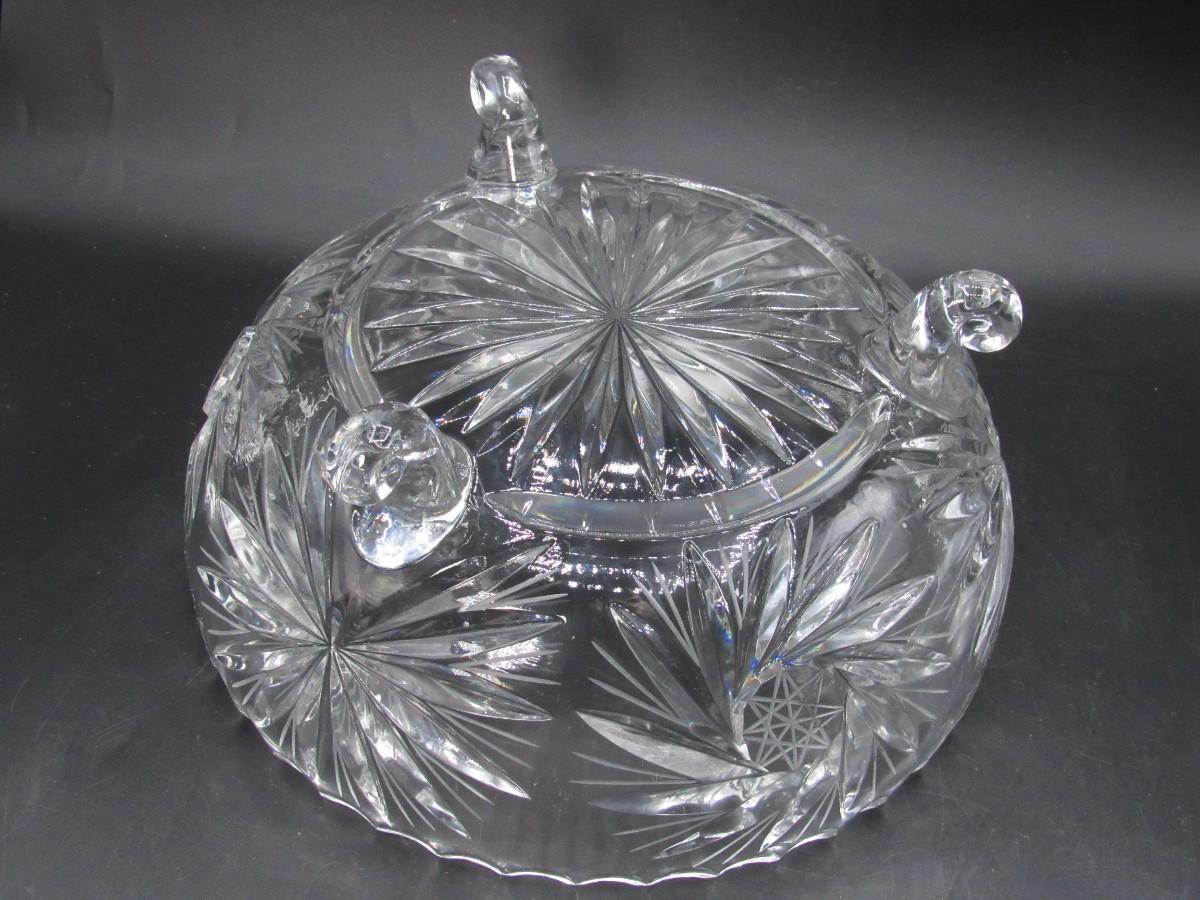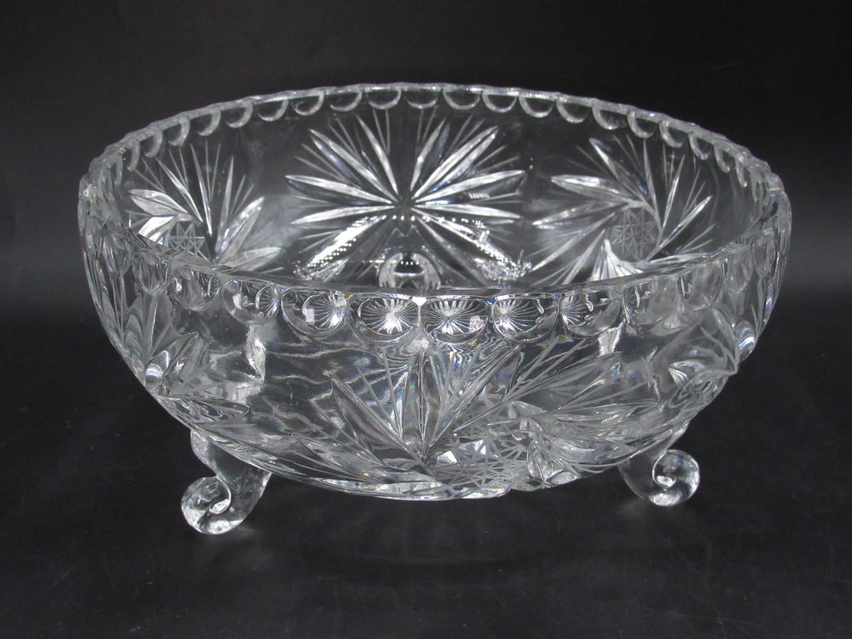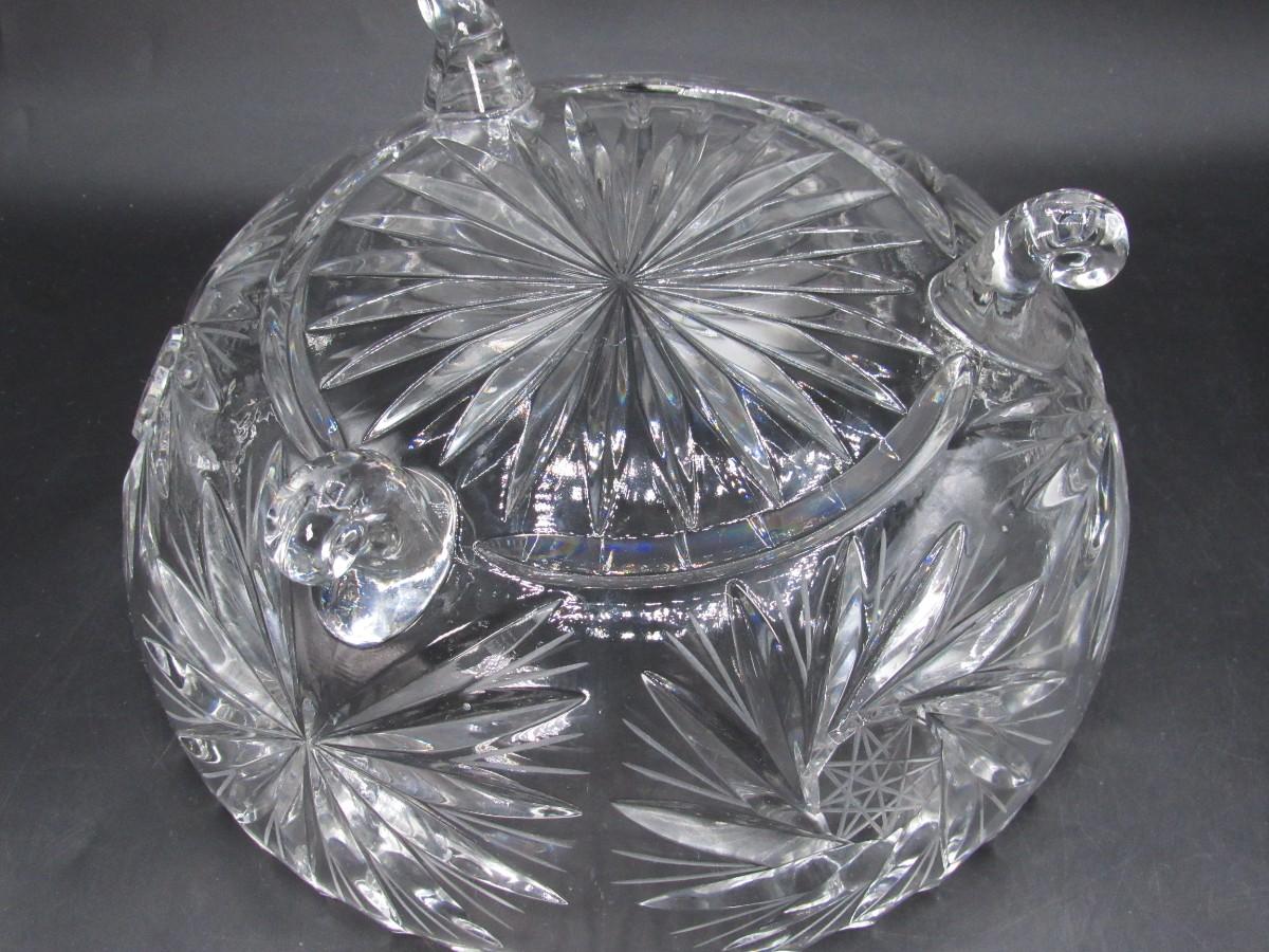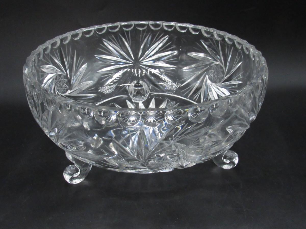 Vintage Anna Hutte Crystal Glass Bowl Stars Pinwheels MCM Design Trinket Bowl