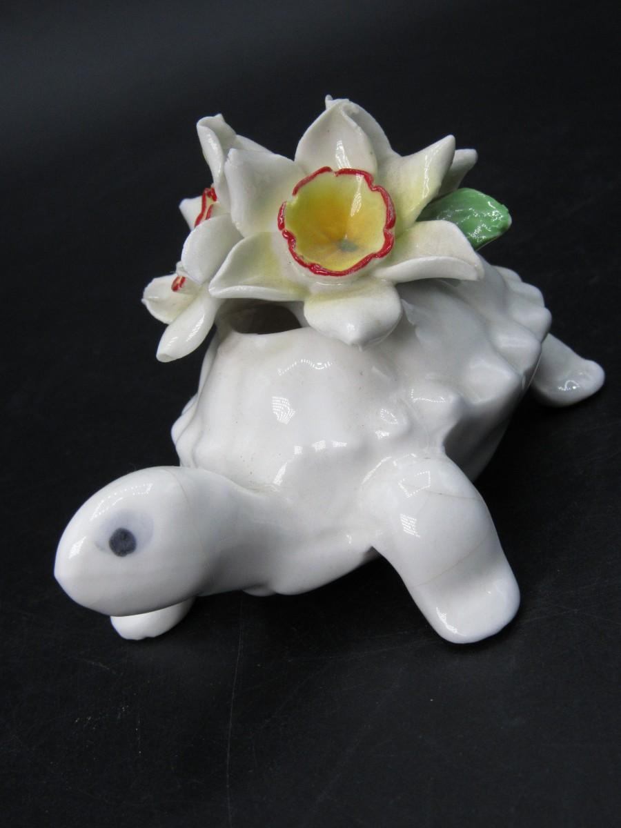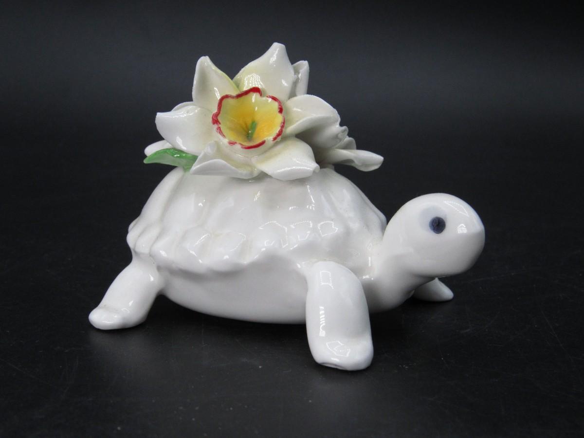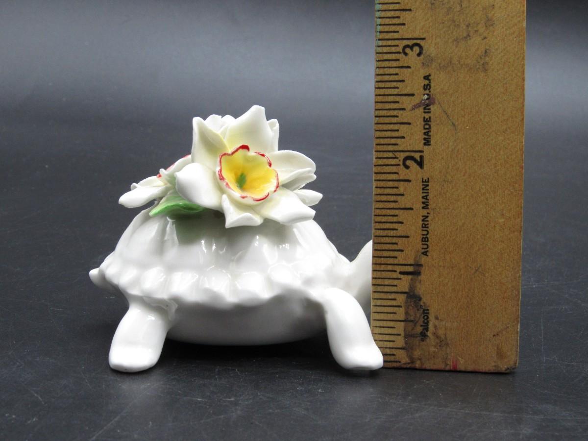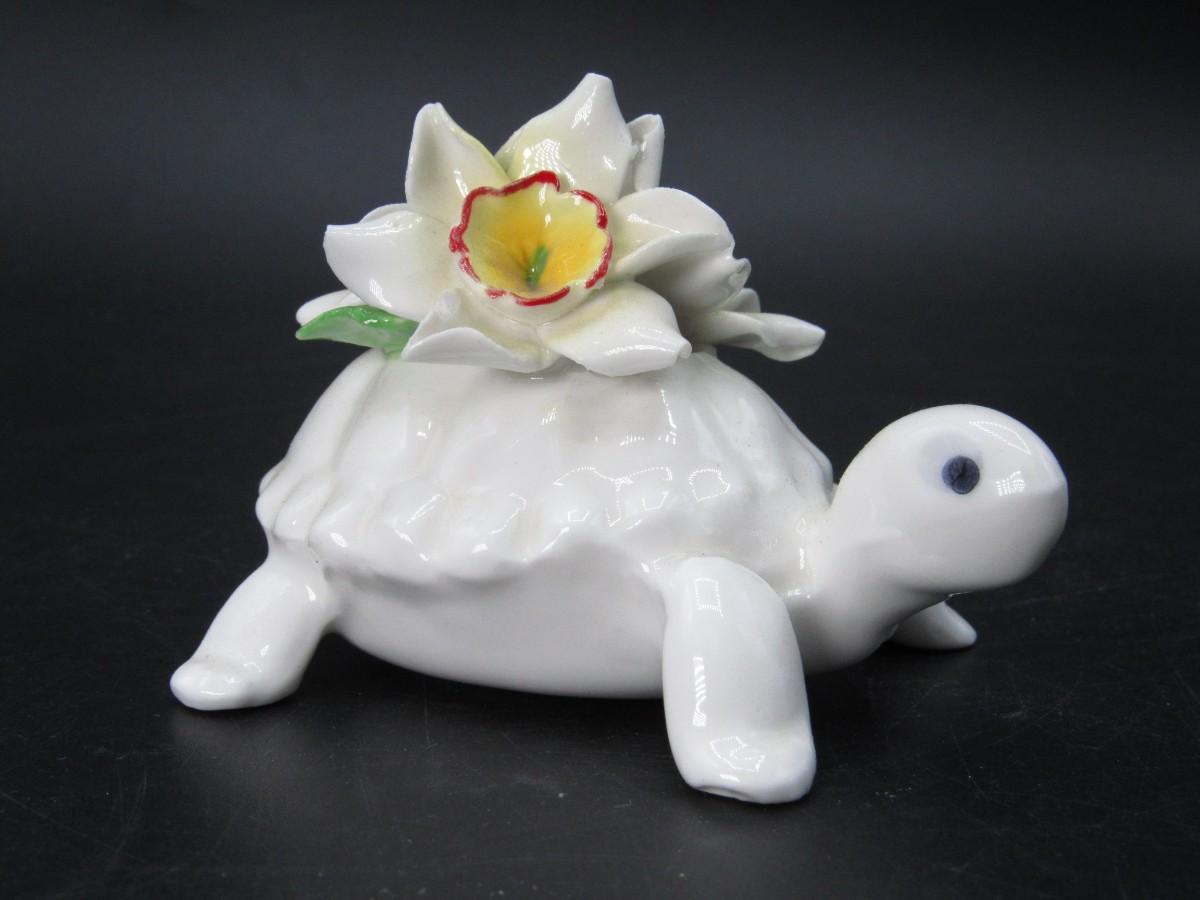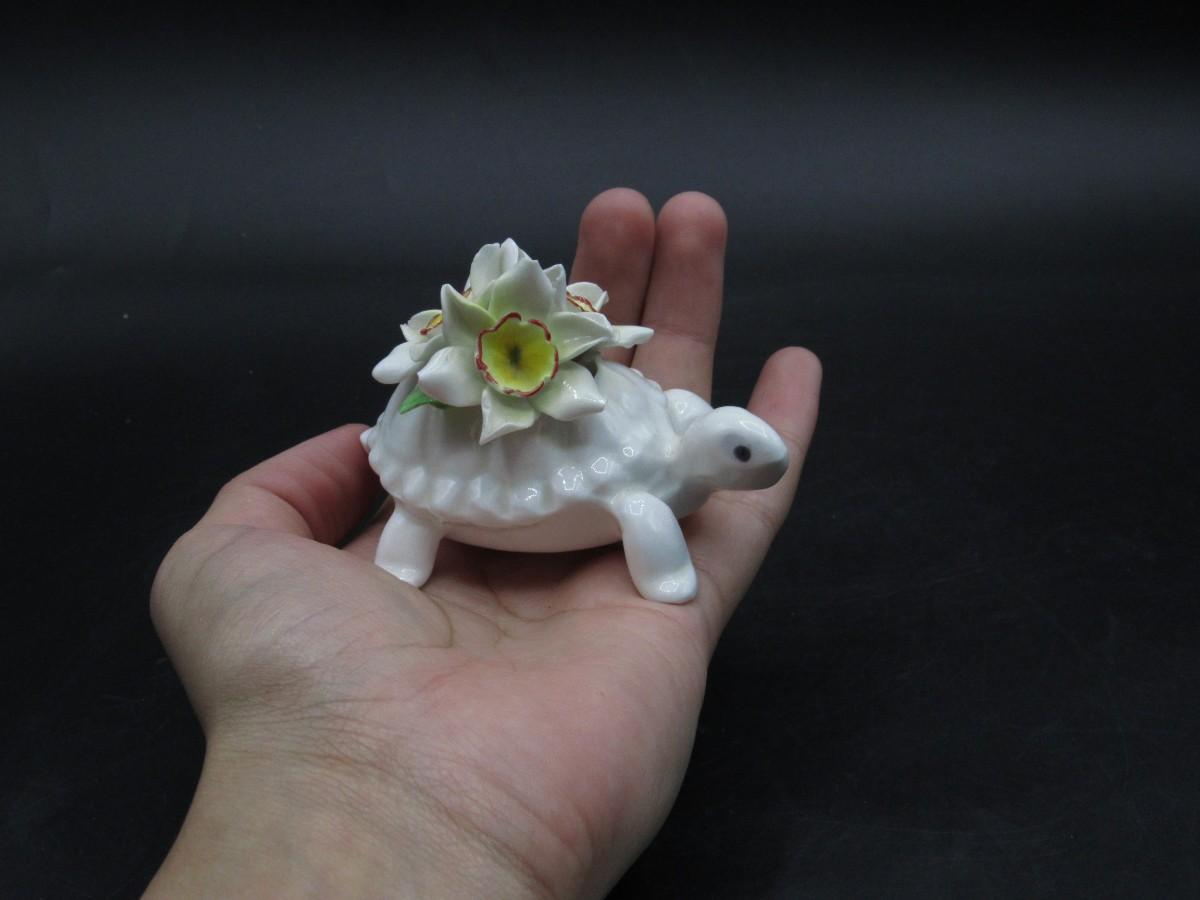 Raybur Bone China Staffordshire Turtle Figurine. Has flower on top of shell. Great condition, no visible damage. Approx. 4" long, 3" tall.