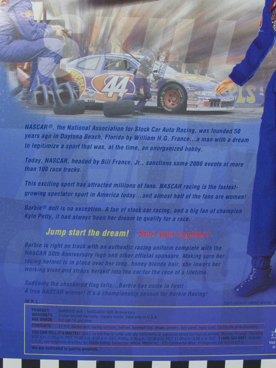 50th Anniversary Nascar Barbie Doll Collectibles Mattel 20442 in Original Box