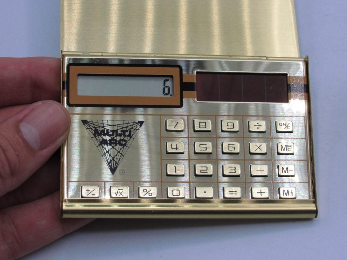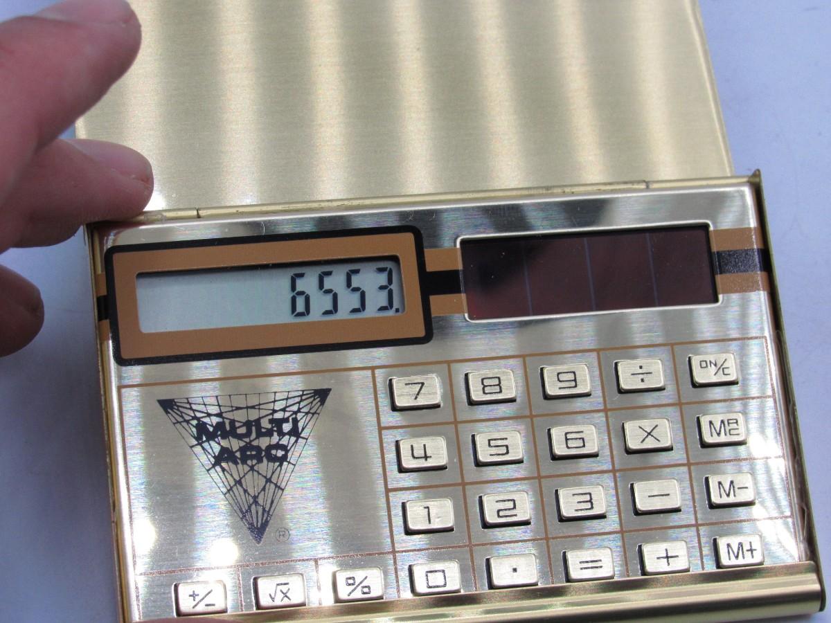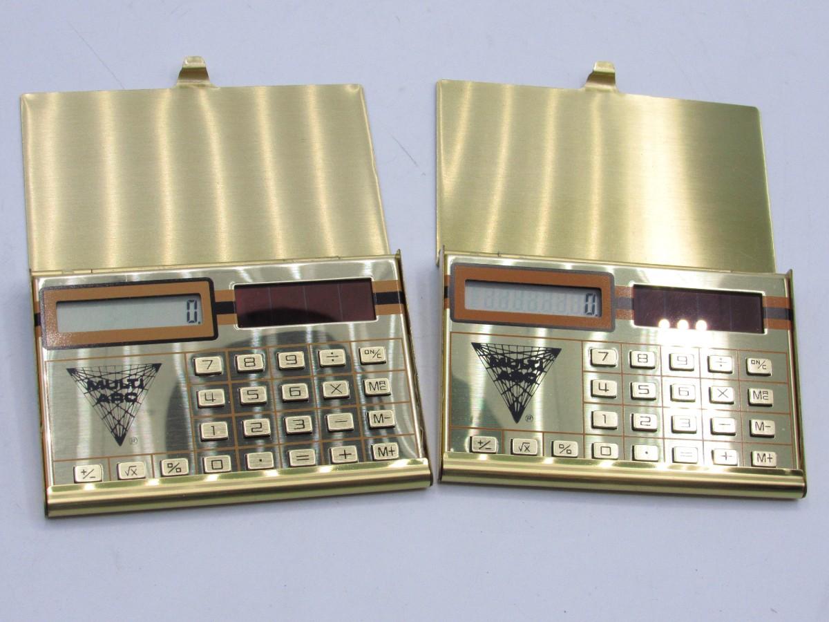 Pair of Solar-Power Credit Card Sized Multi Arc Calculators with Boxes