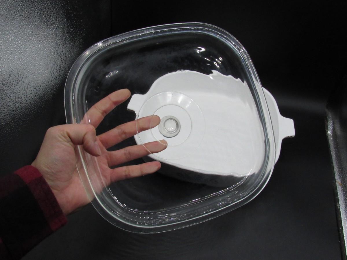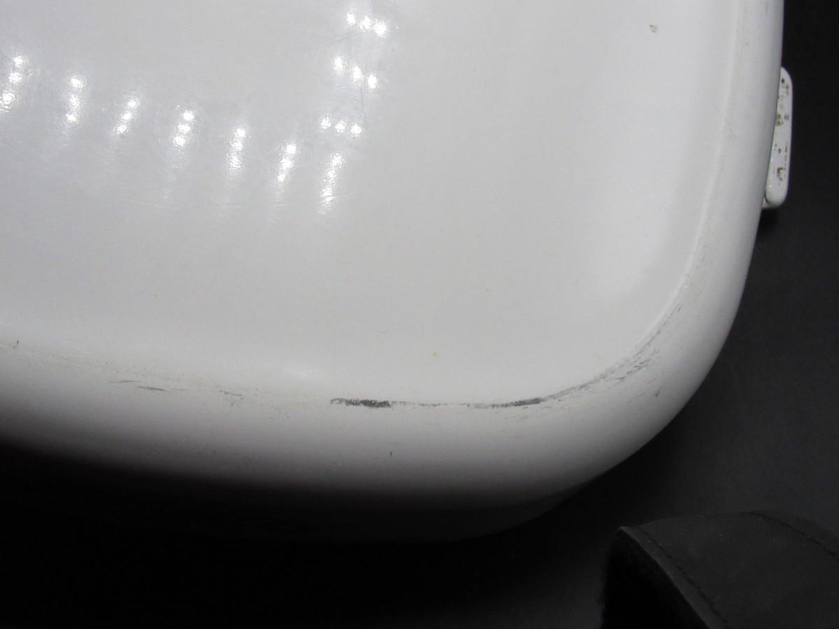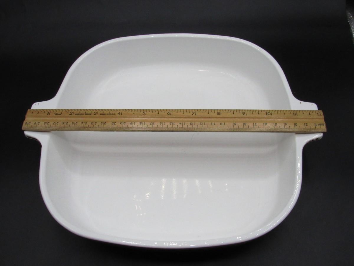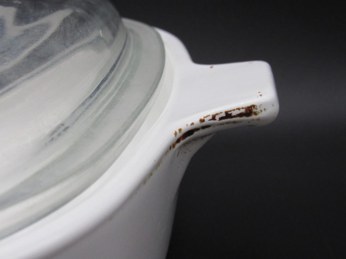 There is no significant damage to the casserole dish and is in good useable condition. Check pictures for more details.