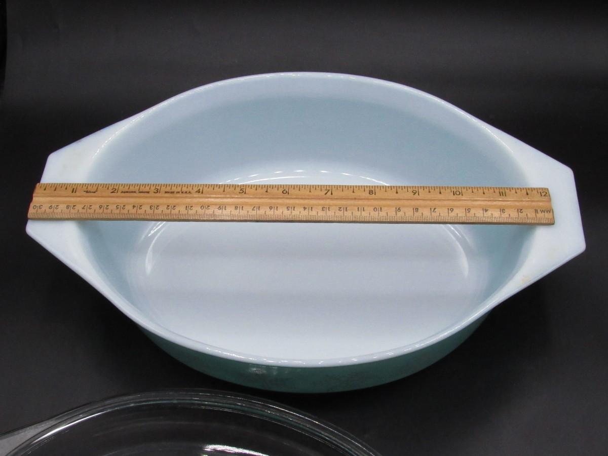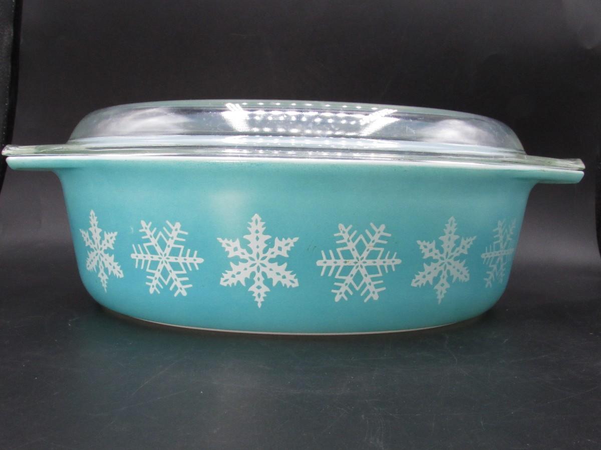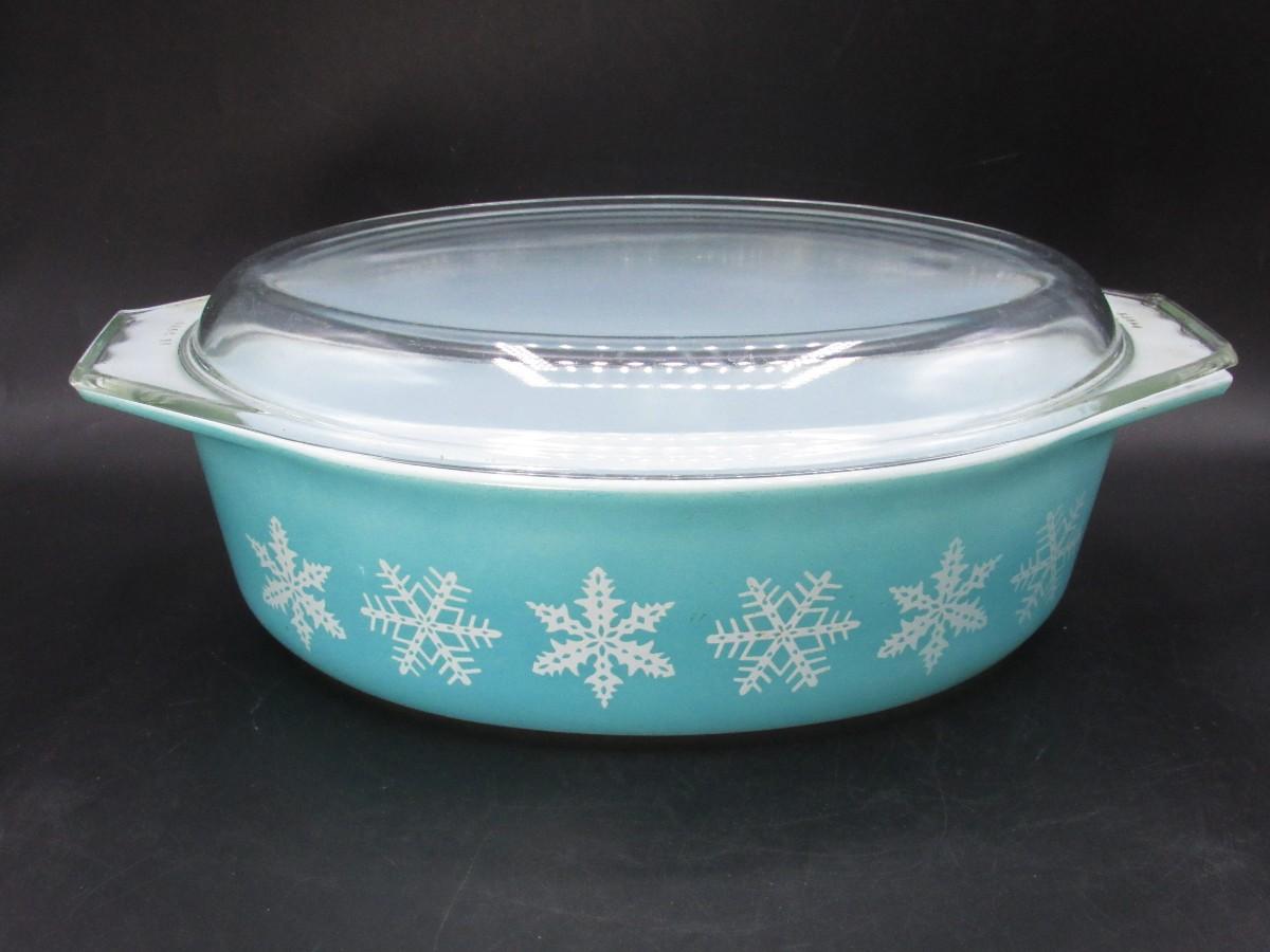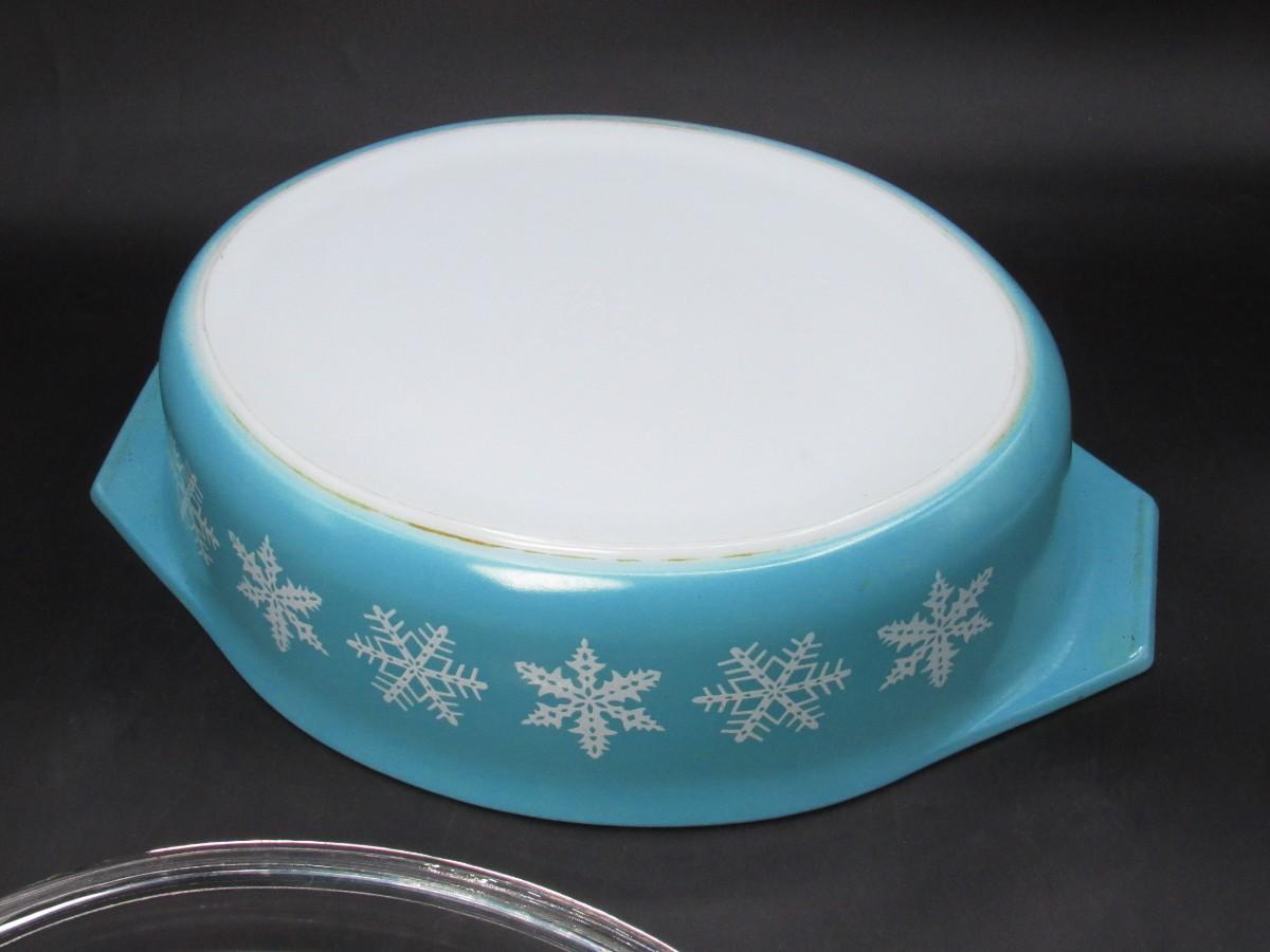 Vintage Pyrex Blue Snowflake Oval Casserole Dish Kitchenware with Glass Lid
