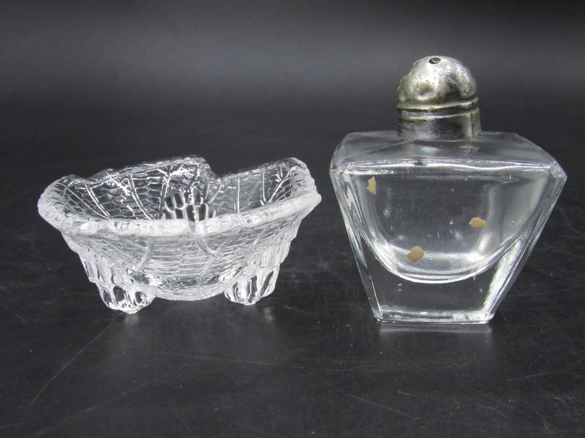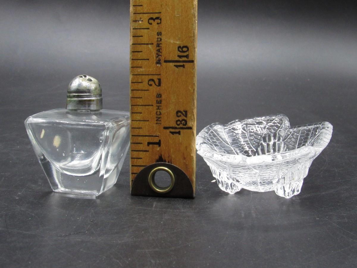 Small Vintage Salt Crystal Glass Trinket Pepper Ingredient Dish with Shaker