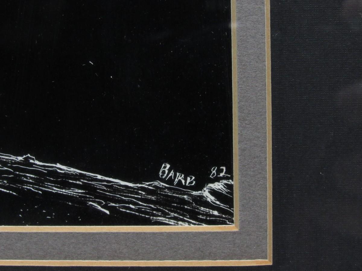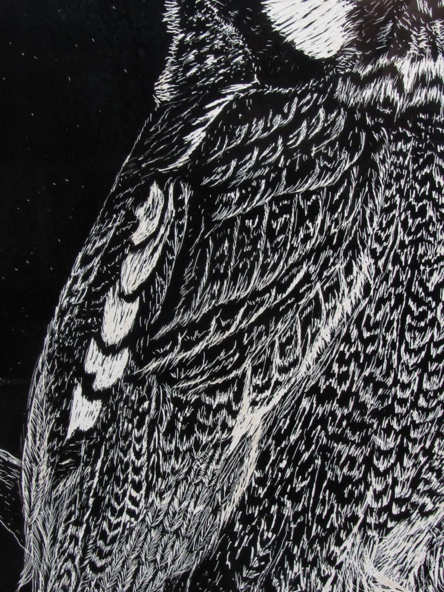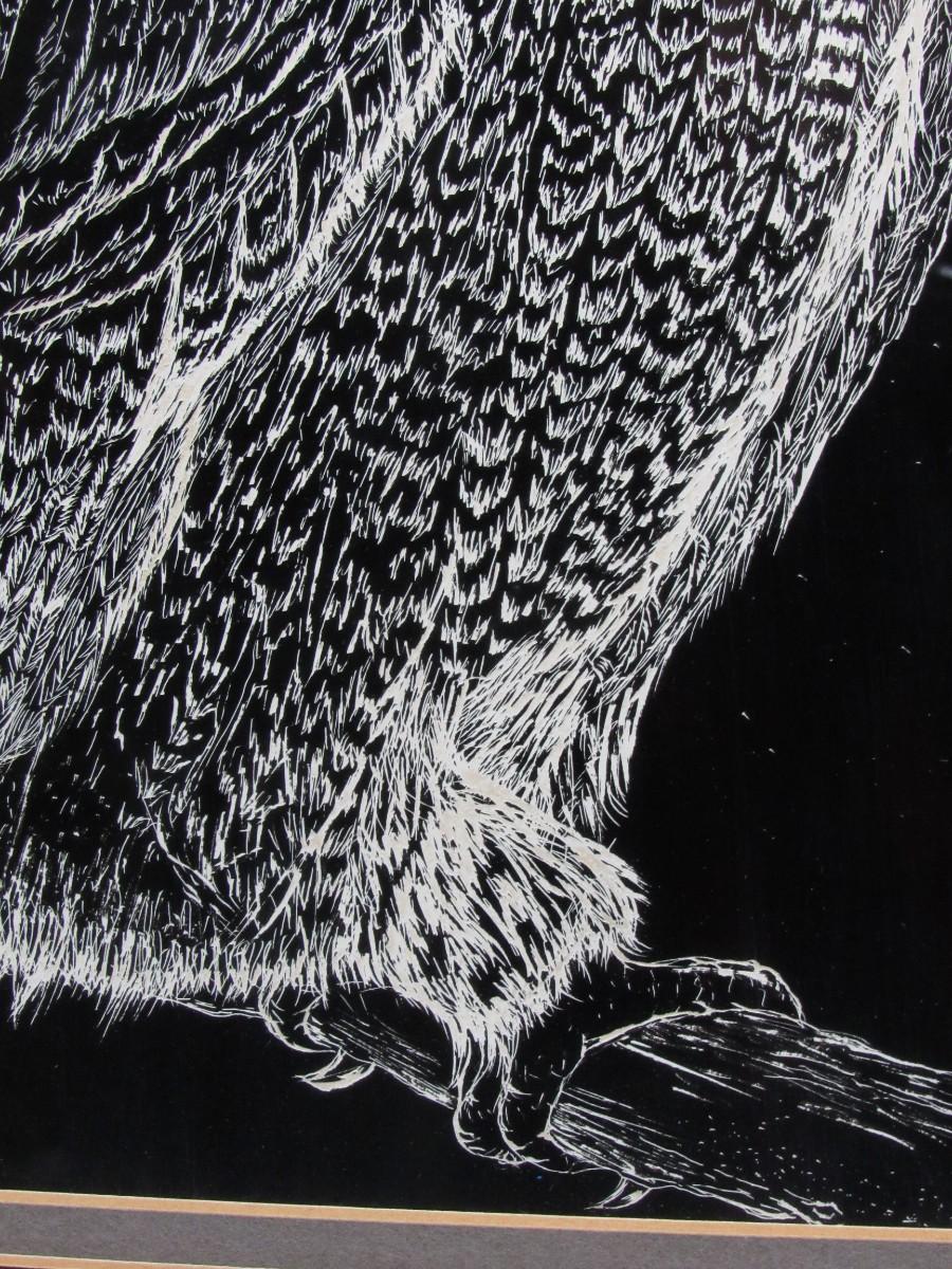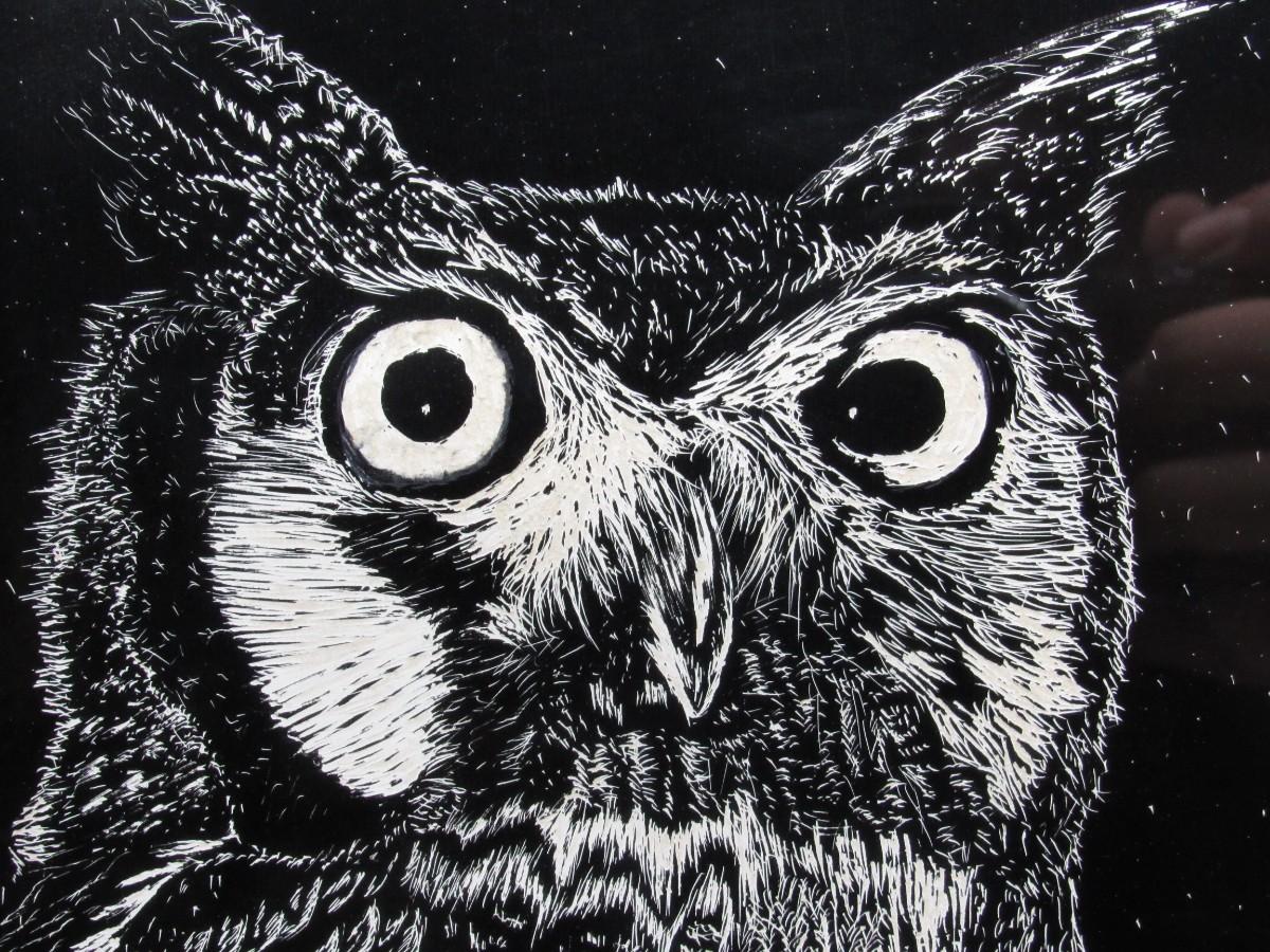 Framed Vintage Etch Board Art of Wild Owl with Moon