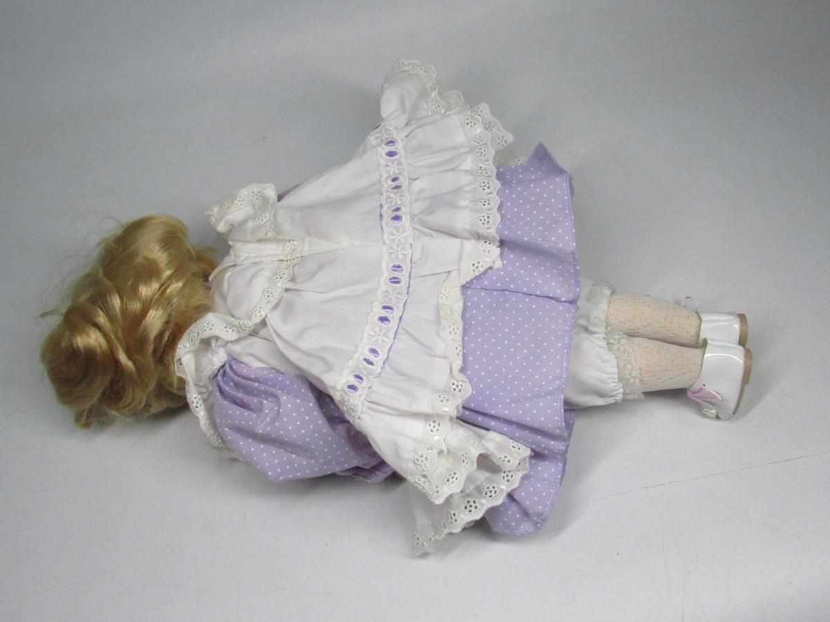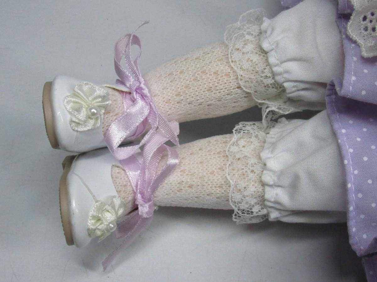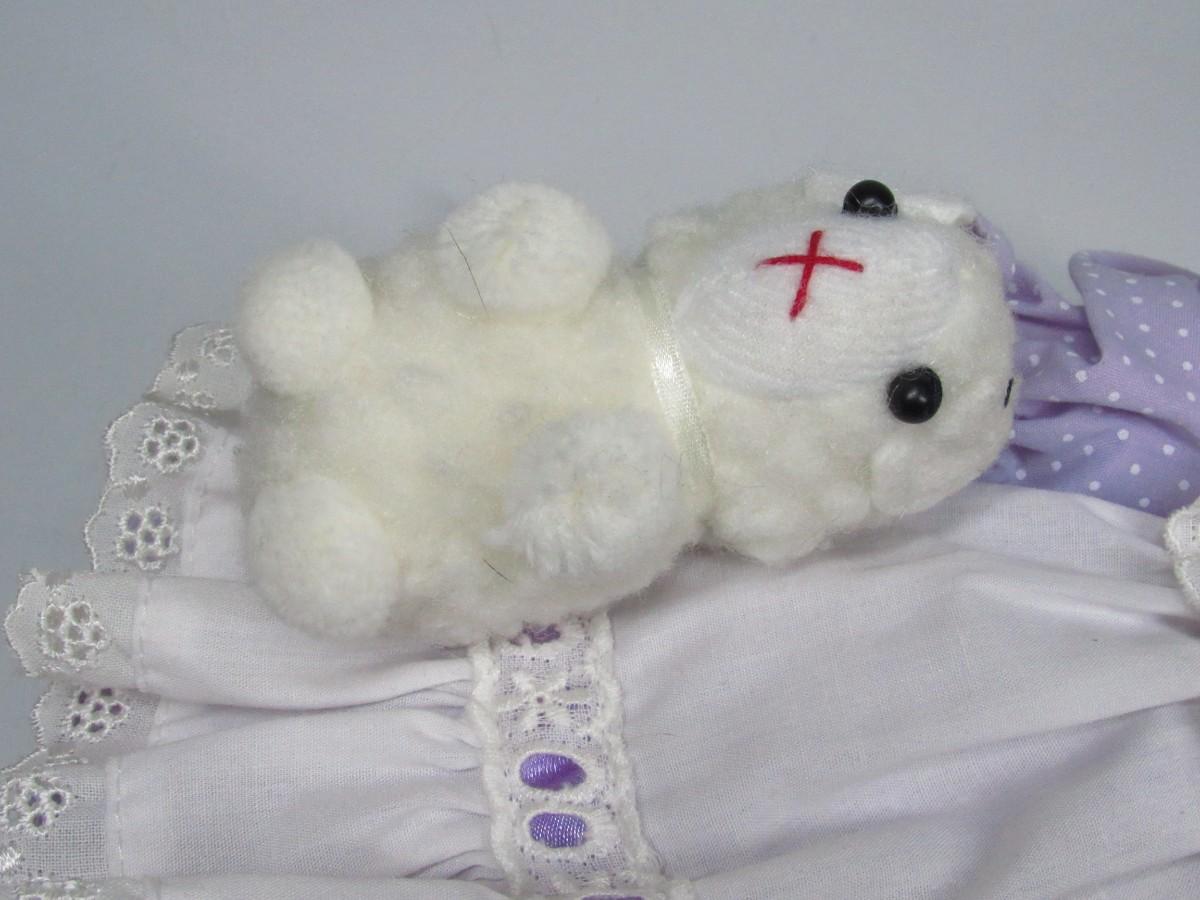 Retro Brinn's Dolls Little Girl in Purple Dress Carrying Lamb Stuffed Animal