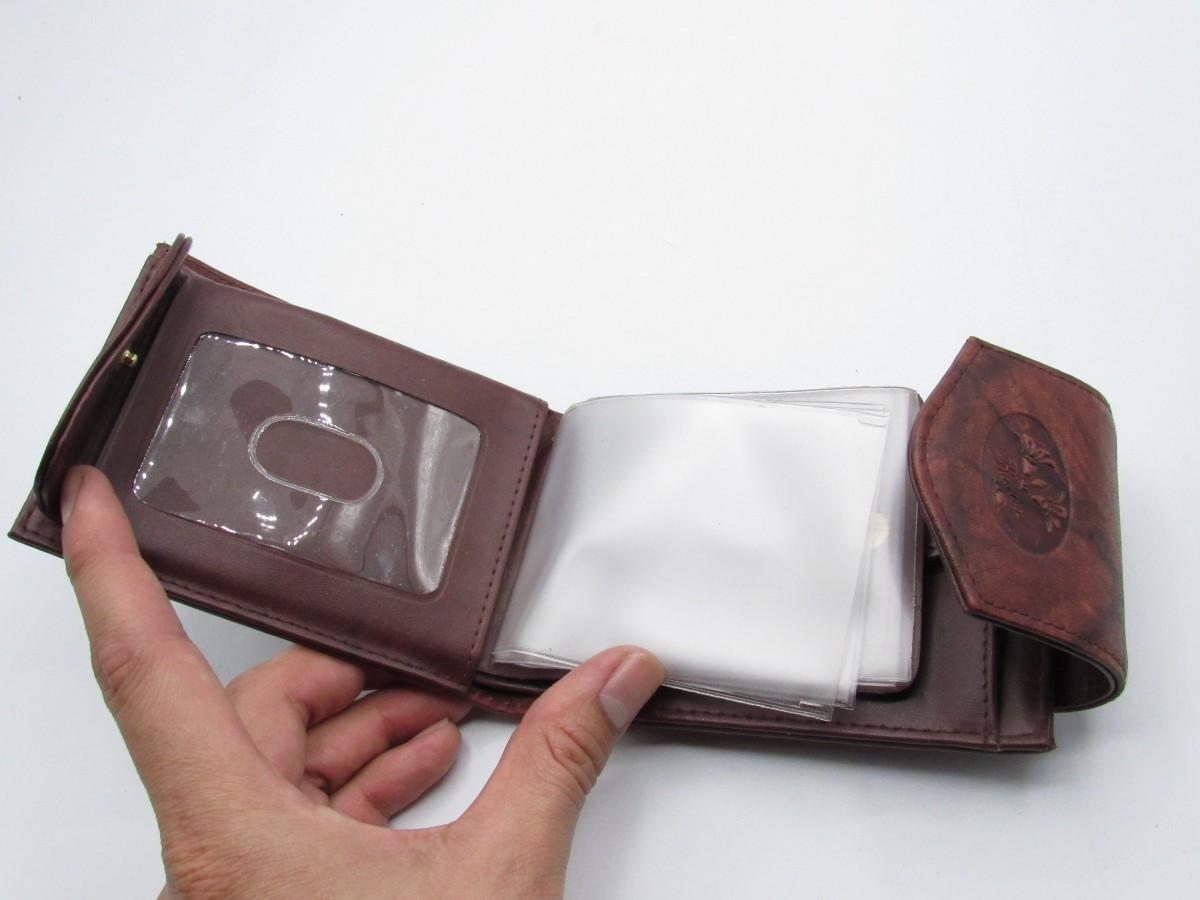 Vintage Buxton Genuine Leather Exterior Brown Womens Folding Wallet