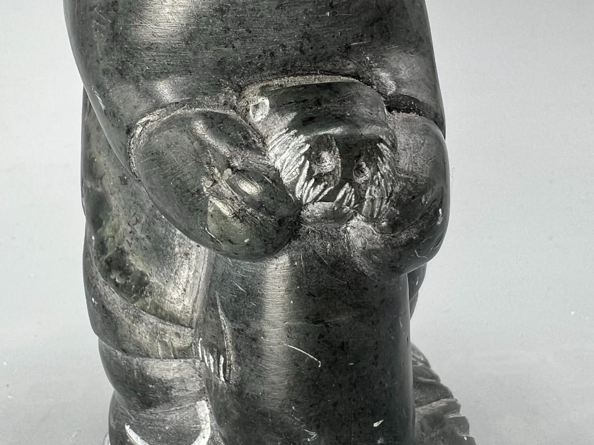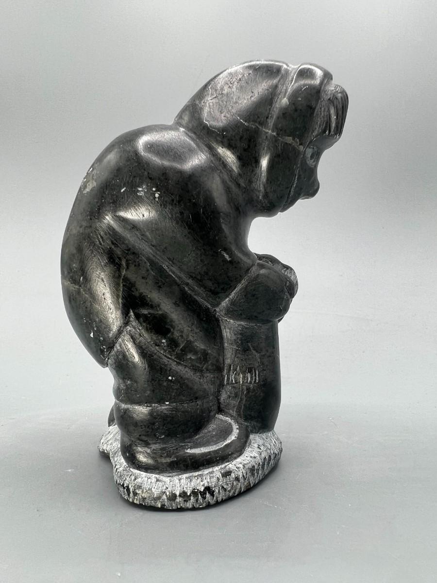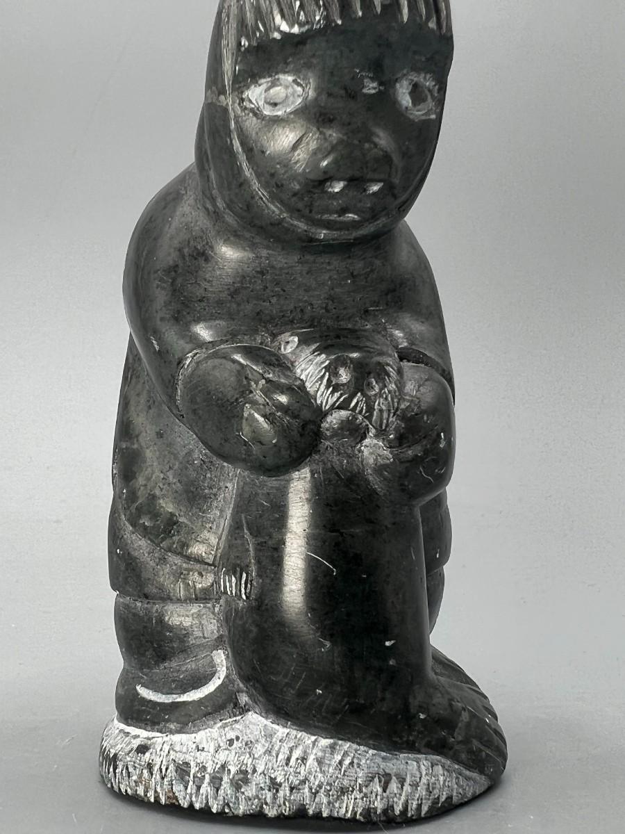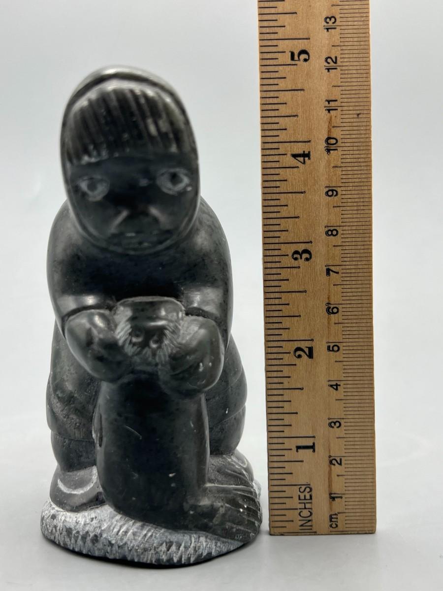 Vintage Foreign Canada Souvenir Inuit Hunter with Seal Eskimo Carved Soapstone Figurine