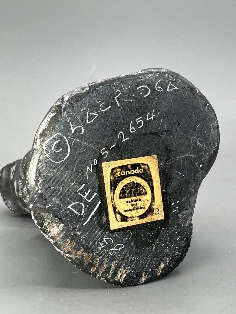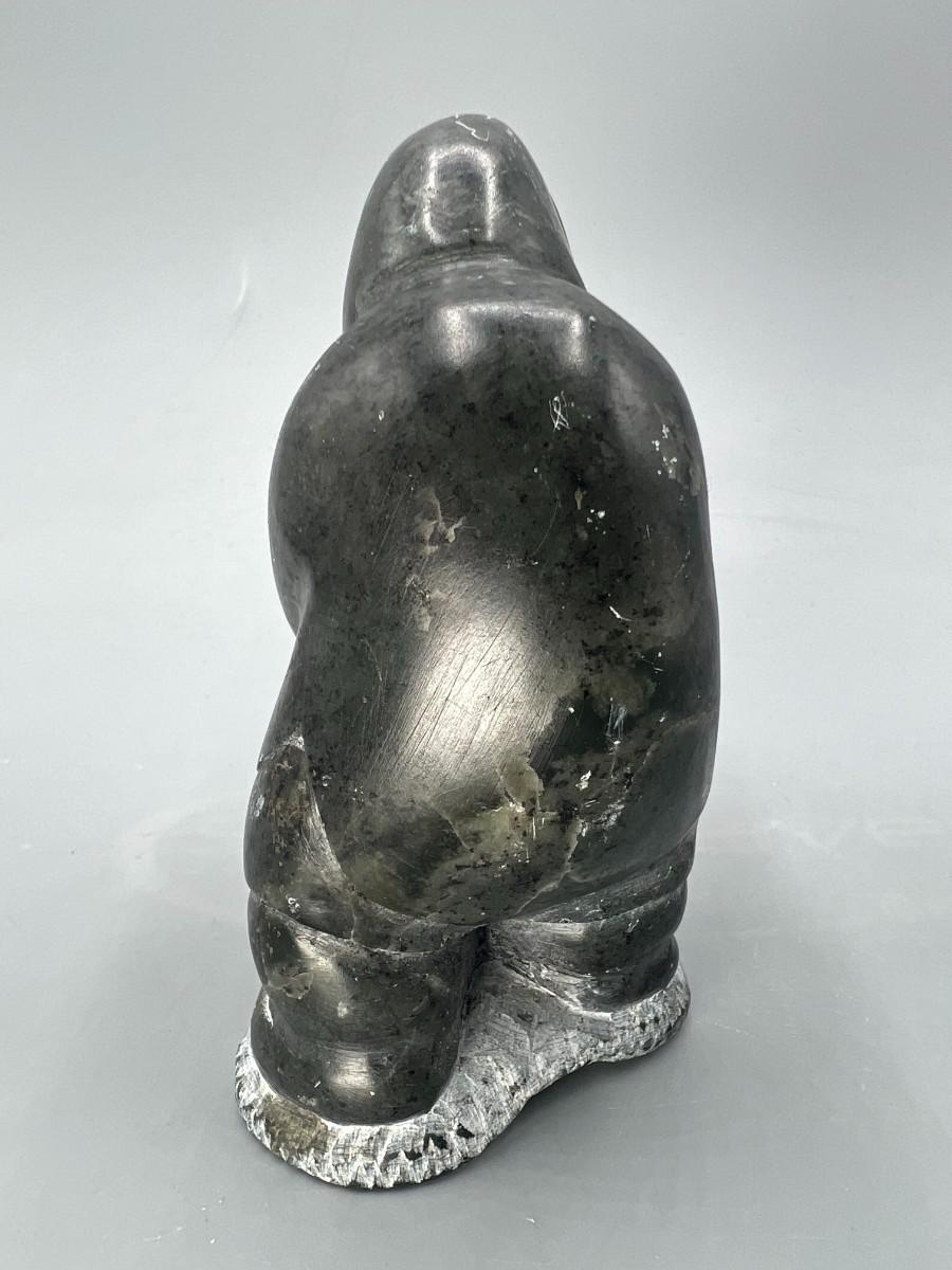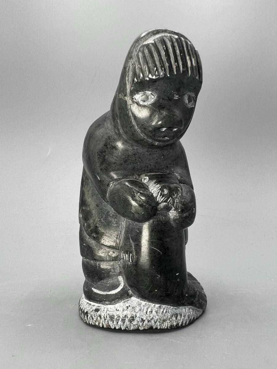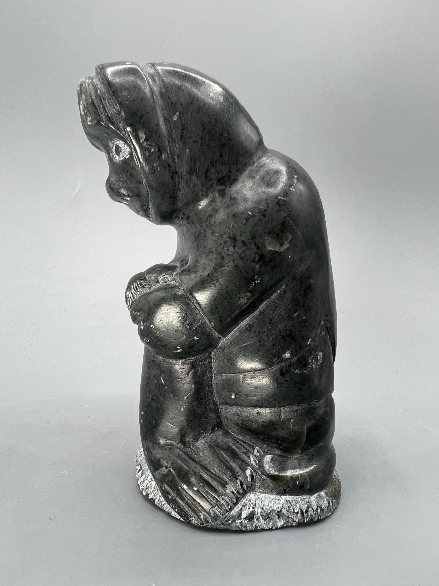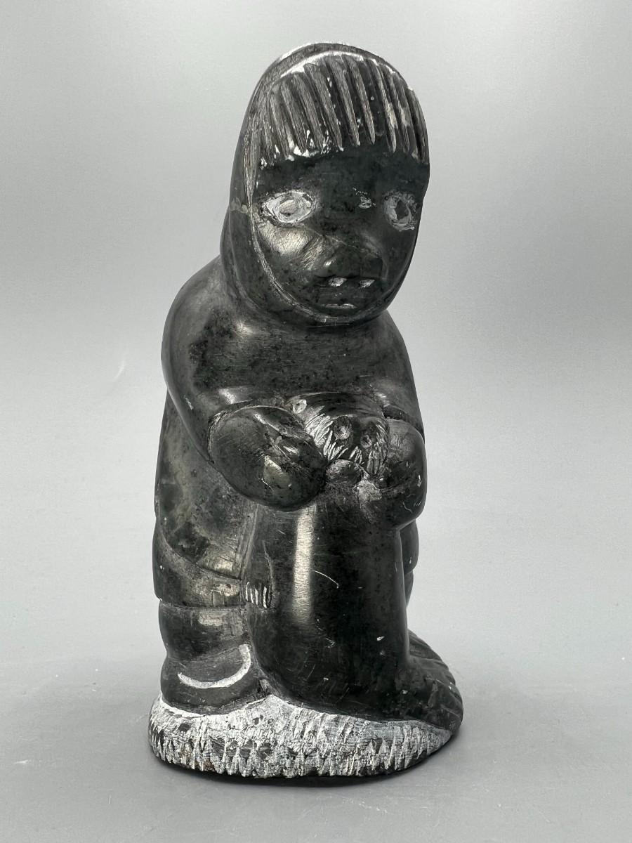 Vintage Foreign Canada Souvenir Inuit Hunter with Seal Eskimo Carved Soapstone Figurine